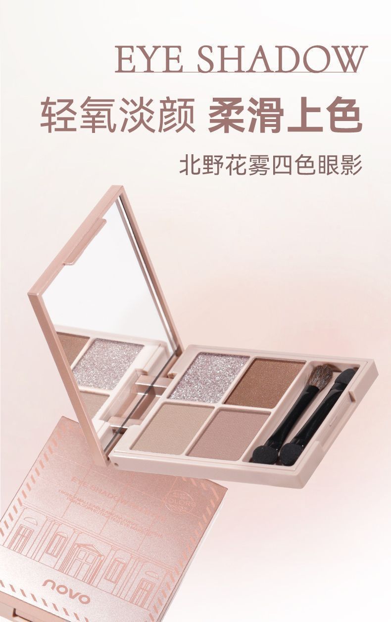 NOVO Flower Fog Four-color Eyeshadow Plate Advanced Sense Flash Thin Flash Waterproof Sweat-proof Cheap Small Matte Fog Eyeshadow