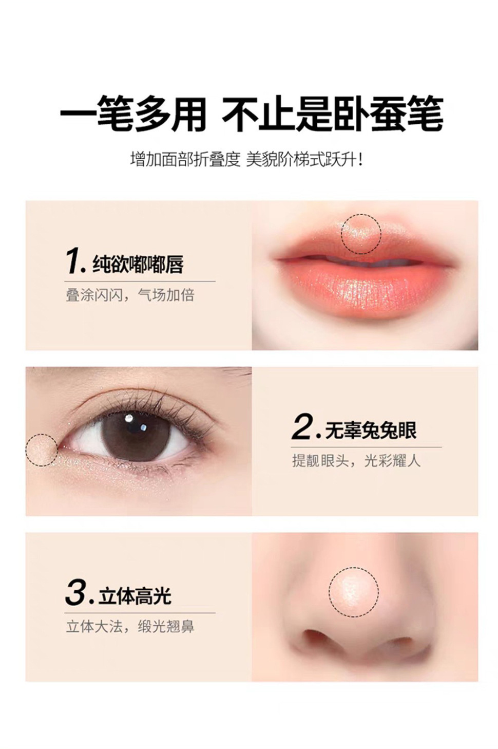 kekemood Double-head Dual-purpose High-gloss Silkworm Lying Pen Women's Brightening Eyeliner Pen