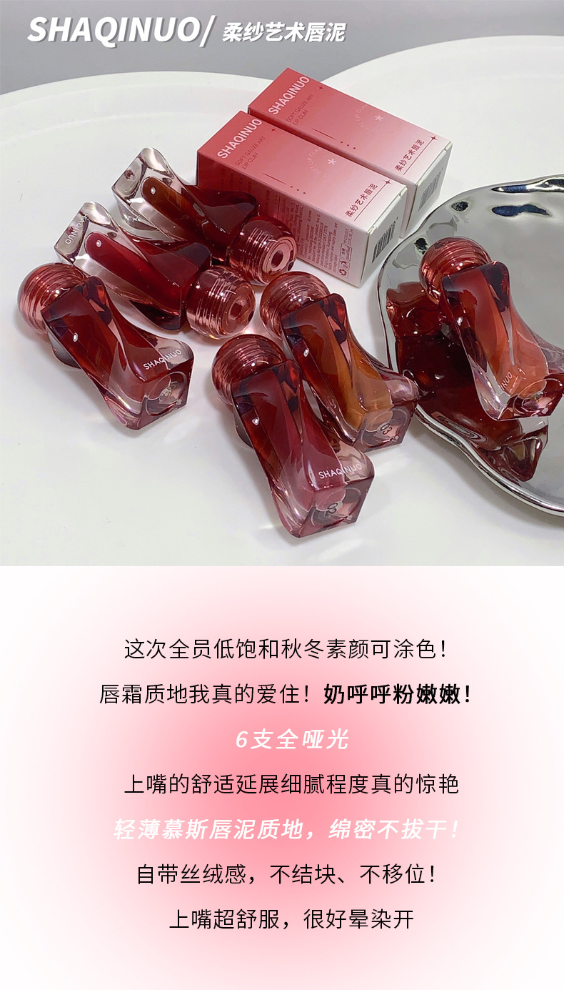 Shanuo soft yarn Art Lip Glaze Matte Velvet lipstick white color rendering makeup cheap lip gloss