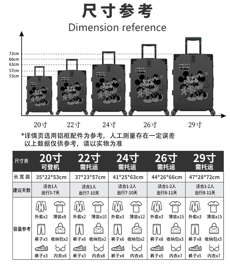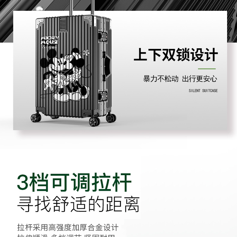 Mickey new graffiti luggage men's and women's aluminum frame password suitcase large capacity