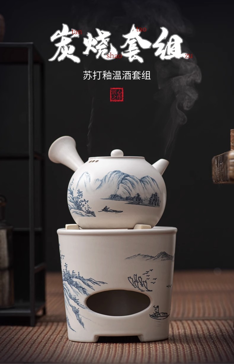 Alcohol block charcoal heating charcoal stove liquor yellow wine cooker ceramic warm wine pot health ceramic pot vintage hot wine pot