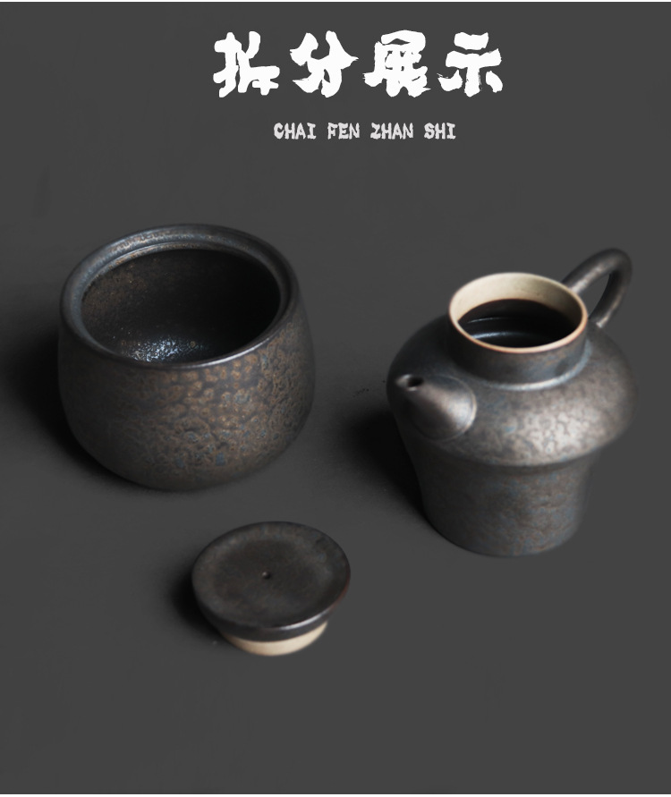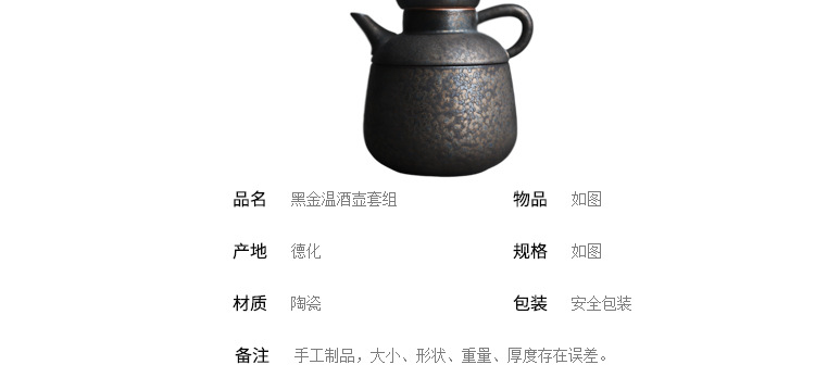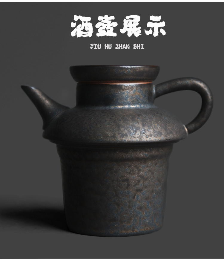 Kiln change black gold warm wine pot set retro stoneware material with water bowl integrated design boiling water insulation wine single pot
