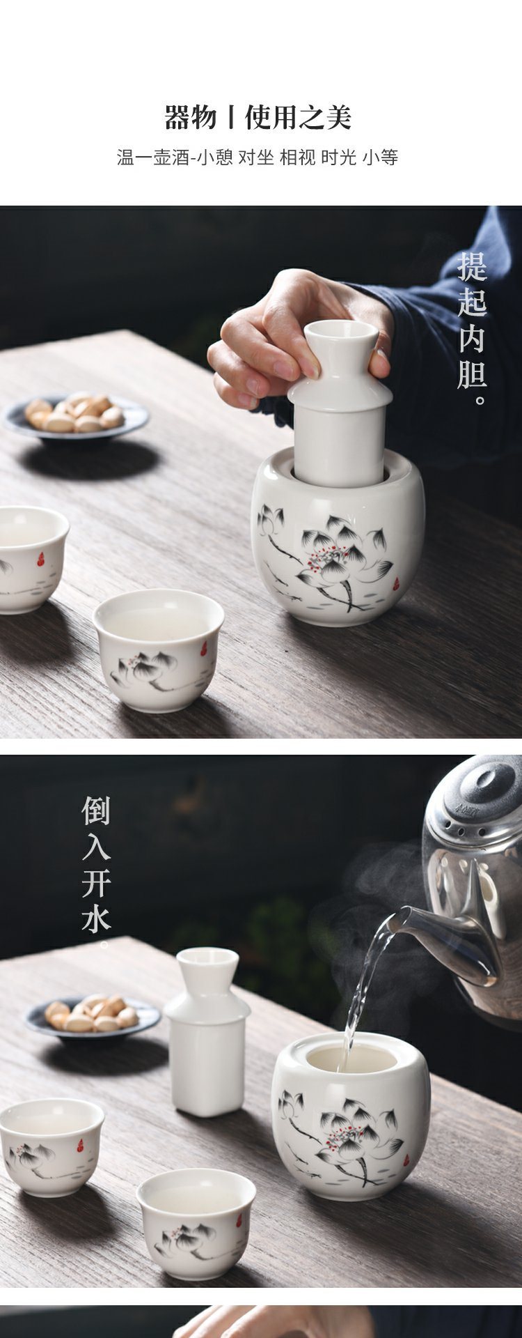 Two two small warm wine pot wine set ceramic hot wine pot alcohol stove heating wine warmer wine distribution yellow wine cup old-fashioned