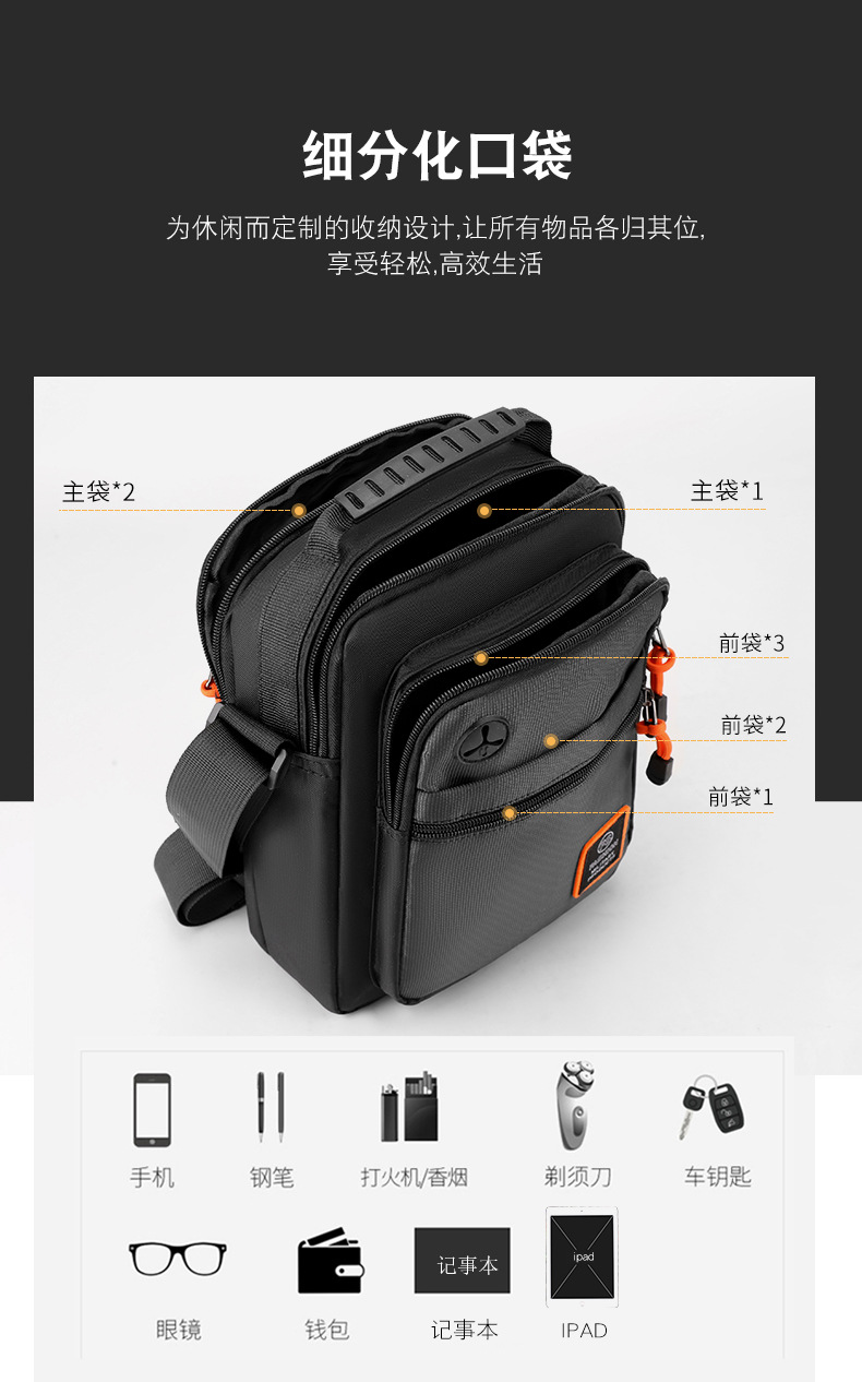 New waterproof thickened men's shoulder messenger bag multi-layer wallet middle-aged and elderly travel Men's backpack vertical small bag