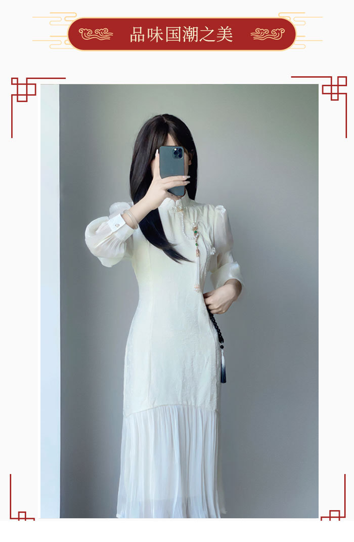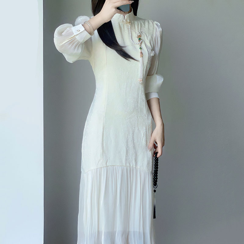 Retro Republic of China New Chinese cheongsam young elegant modified women's autumn long sleeve dress