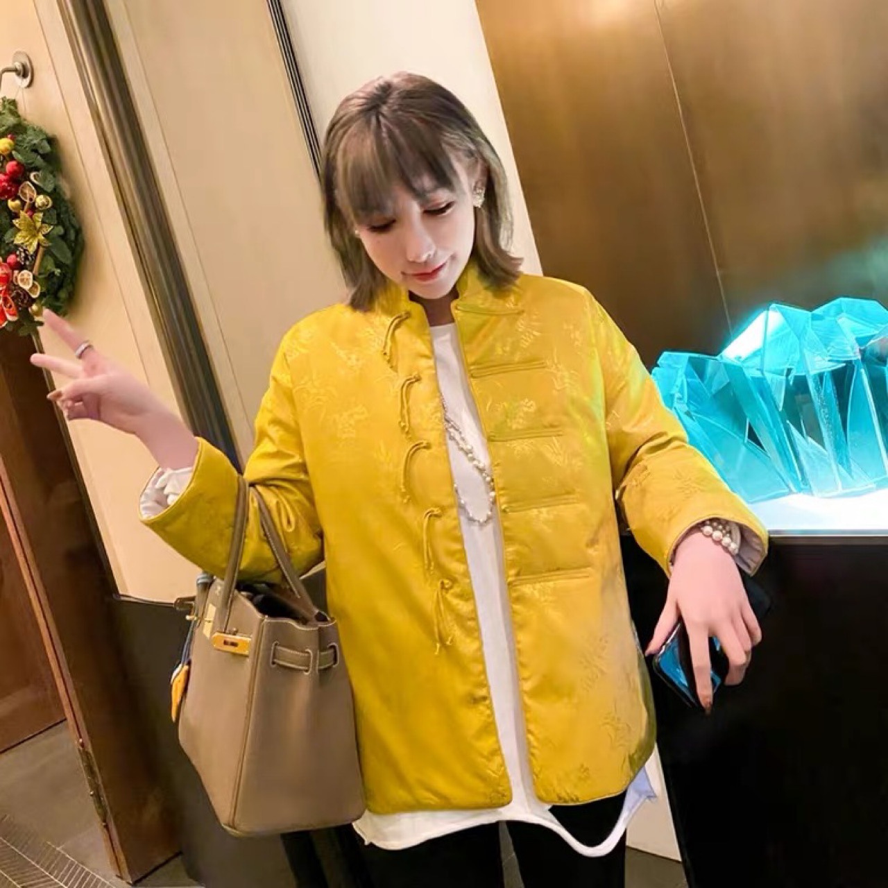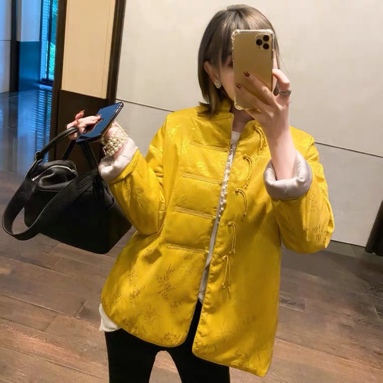 High-end Chinese Style Satin Jacquard Daily Tang Coat Cheongsam Jacket Loose Quilted Top Women's Winter Cheongsam