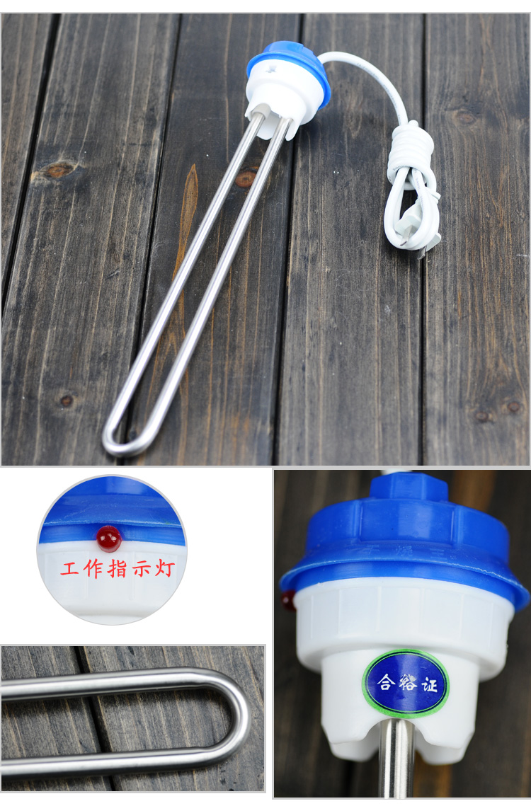 本产品只适用于保温瓶。加热器采用不锈钢材料精制而成,加热管内采用碱性氧化镁作为填料,导热快,绝缘性能好,节能、快捷。在使用过程 中,热水瓶中的水位必须低于瓶口5公分,再将电加热管垂直插入保温瓶内,电加热管的电源插头插入外接电源。此时电源指示灯亮,说明电热管已开始工作。烧水完成后必须先拔掉插头,最好过30秒后再将电加热管从保温瓶内移出,这样有利于延长电加热管的使用寿命。