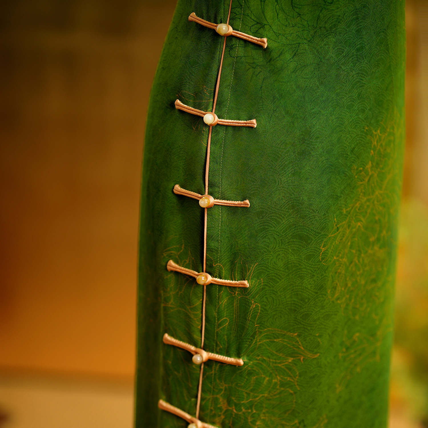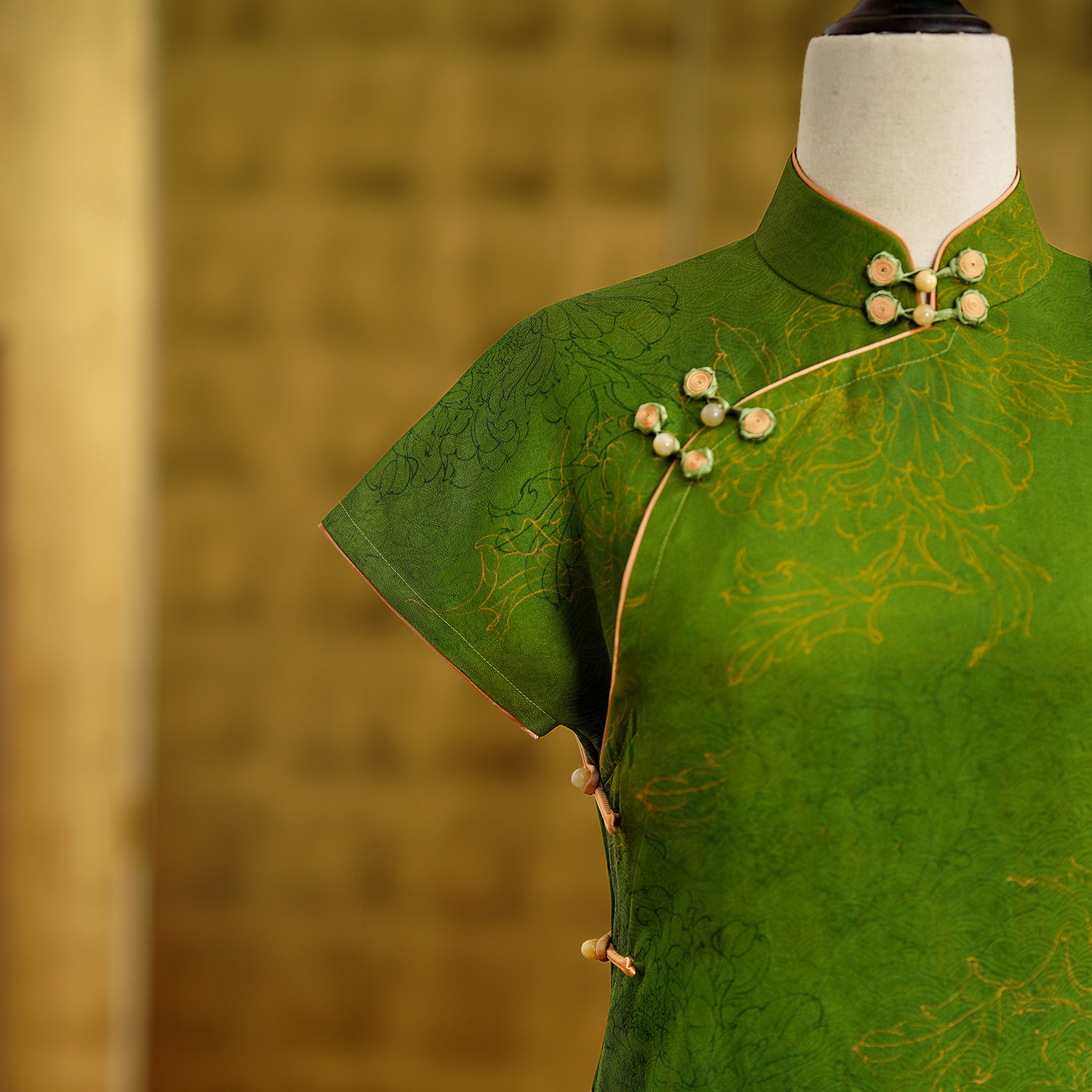面料解说:香云纱是一种具有悠久历史和独特工艺的丝绸面料,触感极为柔软,它是唯一使用纯植物染料进行染色的丝绸面料,天然染色方式使得香云纱具有良好的环保特性。香云纱还具有一定的除菌、驱虫效果,对皮肤有保健作用。