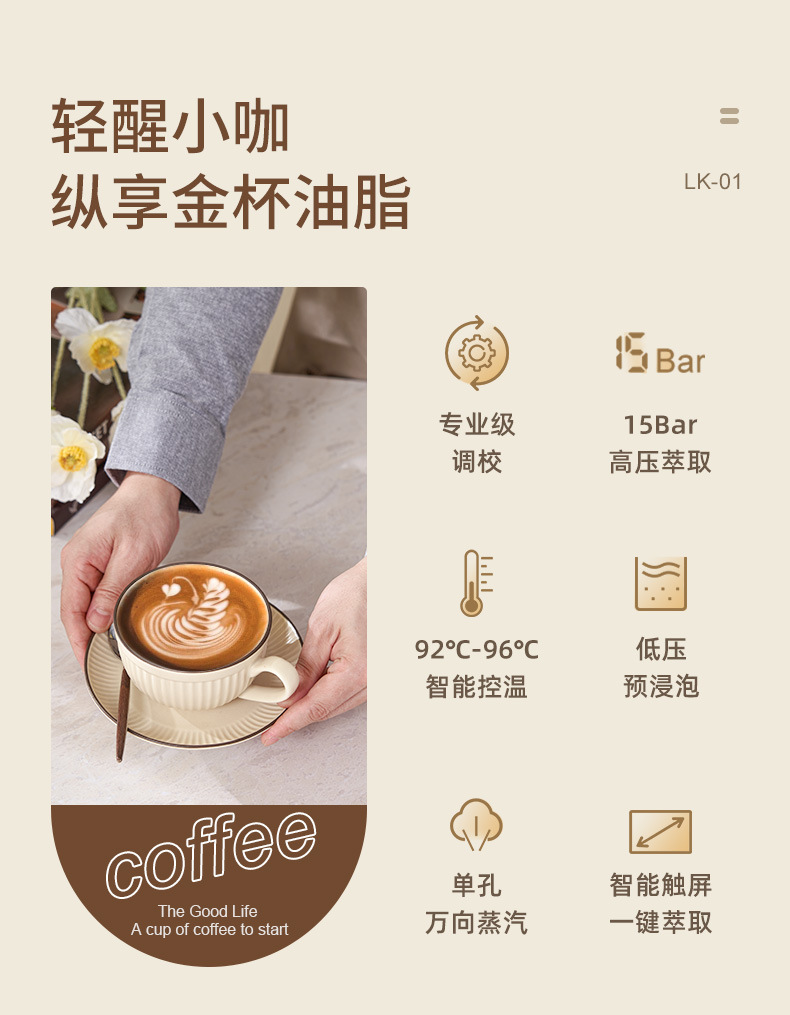Cross-border European and American British Italian coffee machine 20bar pump pressure fully semi-automatic household small milk foam flower steam