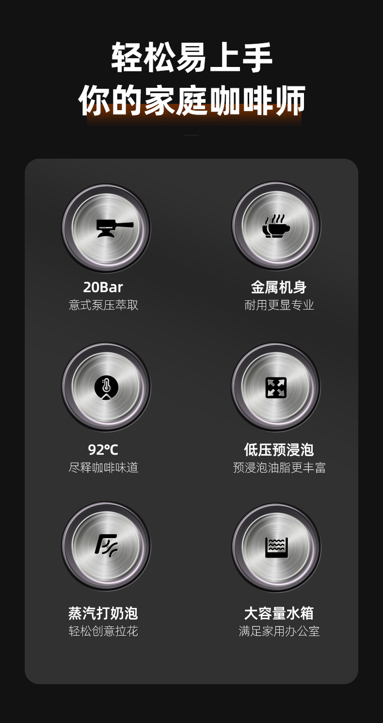 803 Timme Home Italian Coffee Machine Household Small Semi-automatic 20bar High Pressure Extraction Concentrated Milk Foam