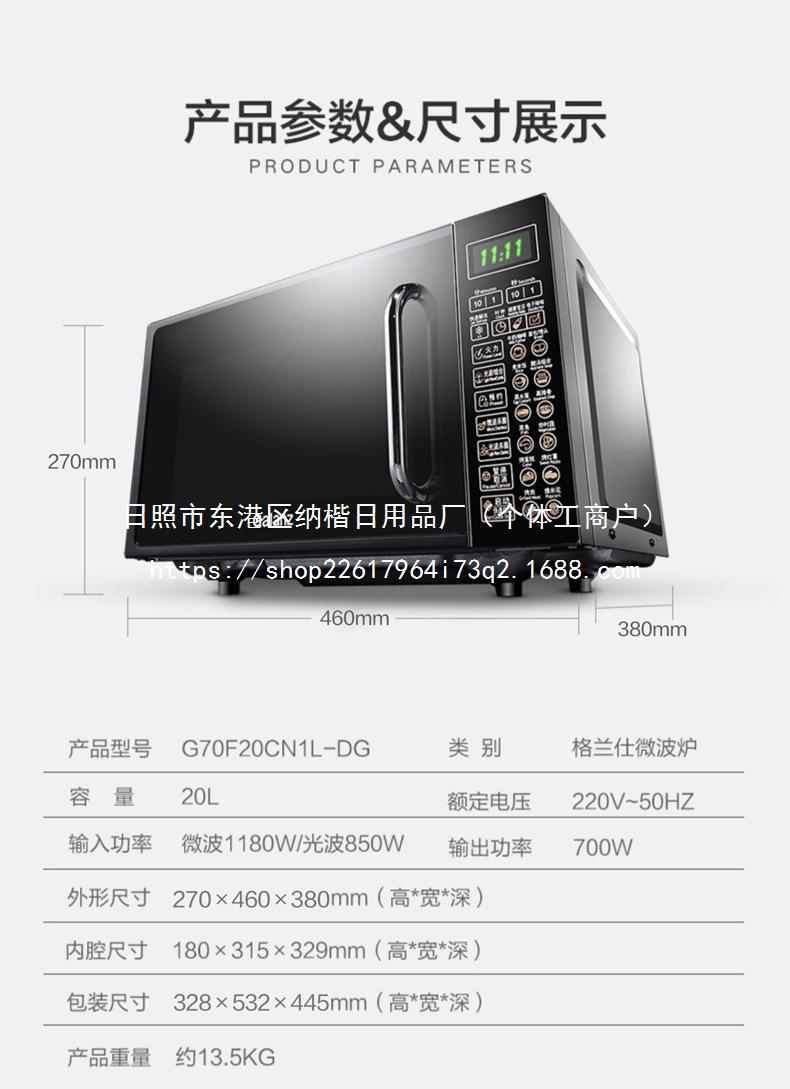 High quality household intelligent microwave oven 20L L L 360 ° turntable three-dimensional heating multi-function baking