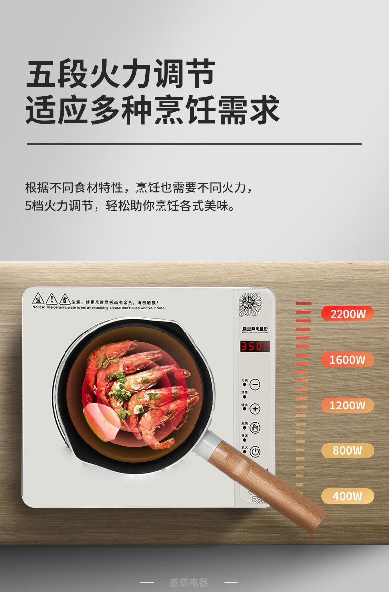 Duck induction cooker household intelligent 2200W high-power kitchen energy-saving small cooking electric cooking stove factory direct sales