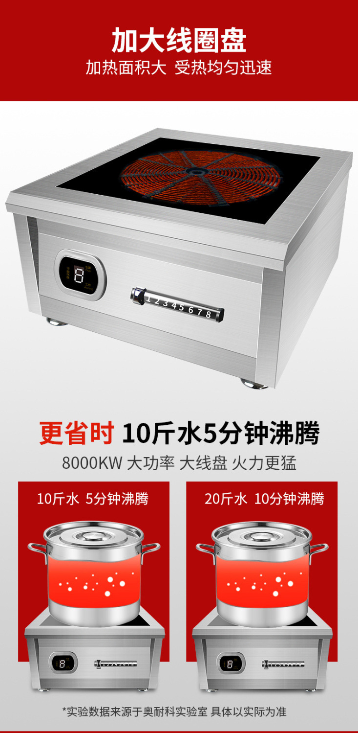 Oneco commercial induction cooker 8KW high power 5000W stainless steel stewed soup 15KW special for stir-fry canteen
