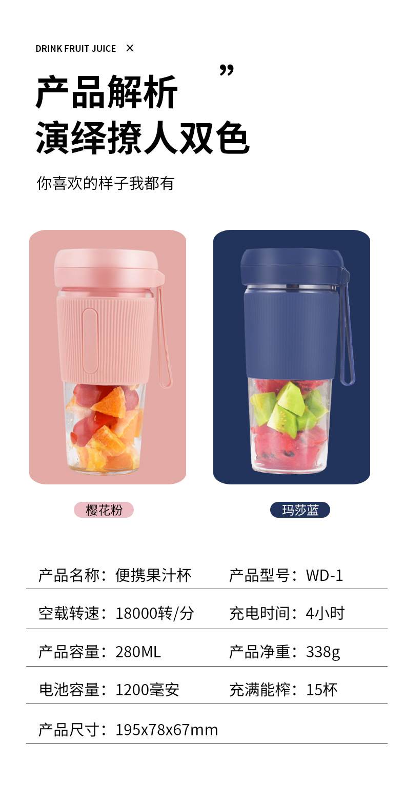 Outdoor Camping Juicer Household Small Portable Fruit Electric Fried Juice Cup Juice Mini Charging Milkshake