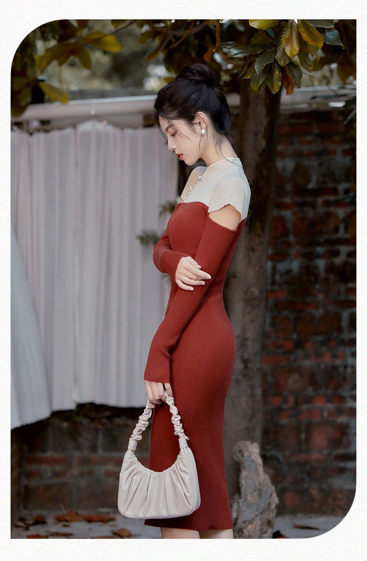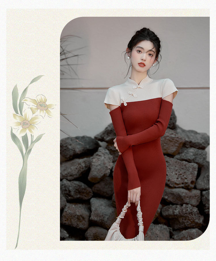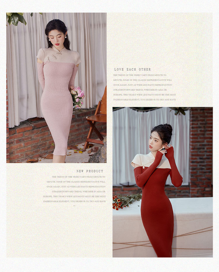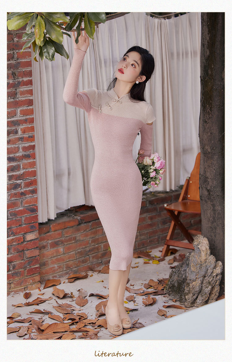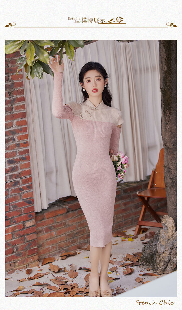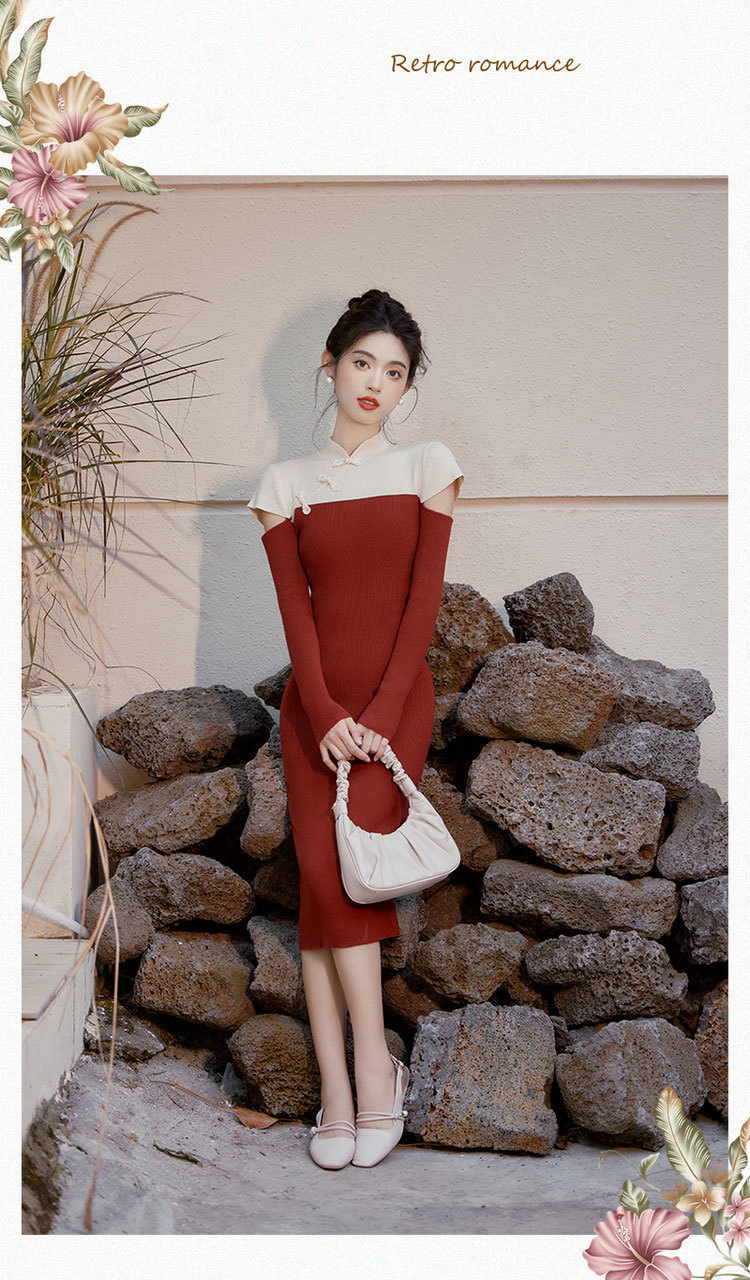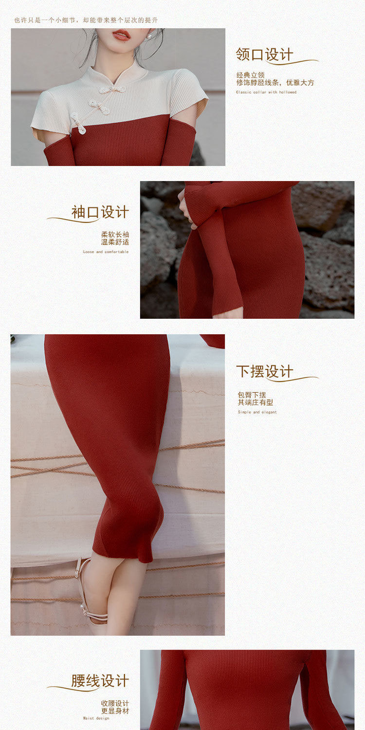 Autumn and Winter new Chinese style retro improved cheongsam knitted dress hip-wrapped elegant dress long skirt