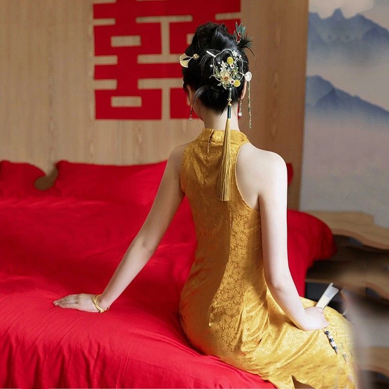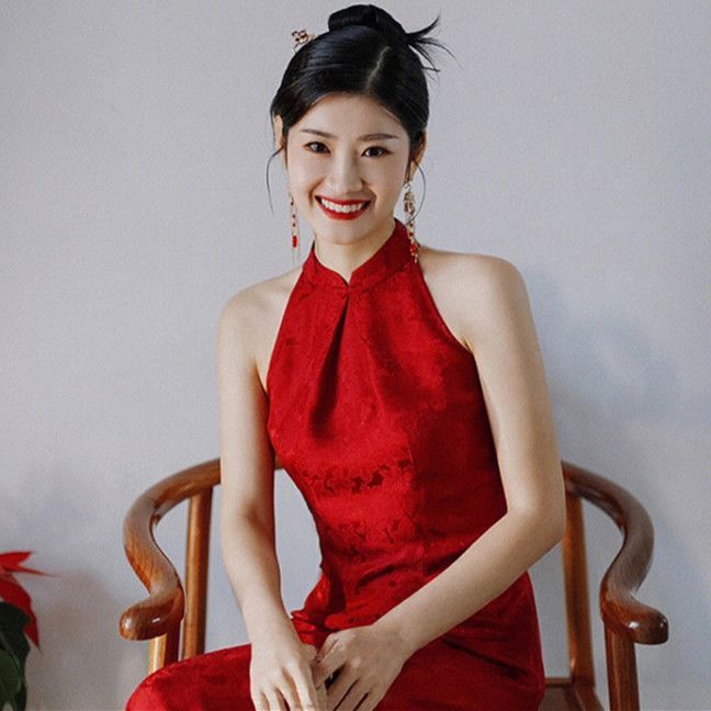 Morning gown wedding bridal feeling wedding women's new Chinese style improved cheongsam autumn and winter red national style retro dress