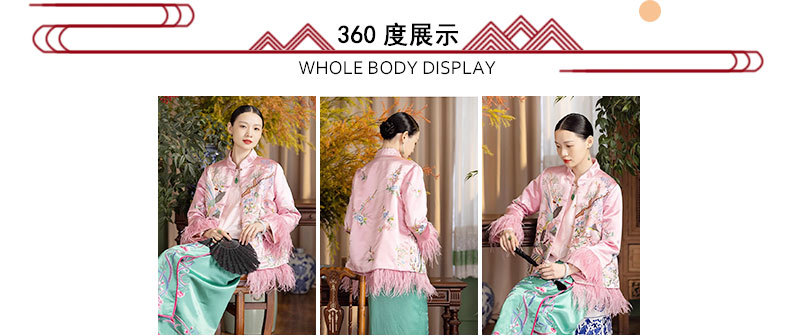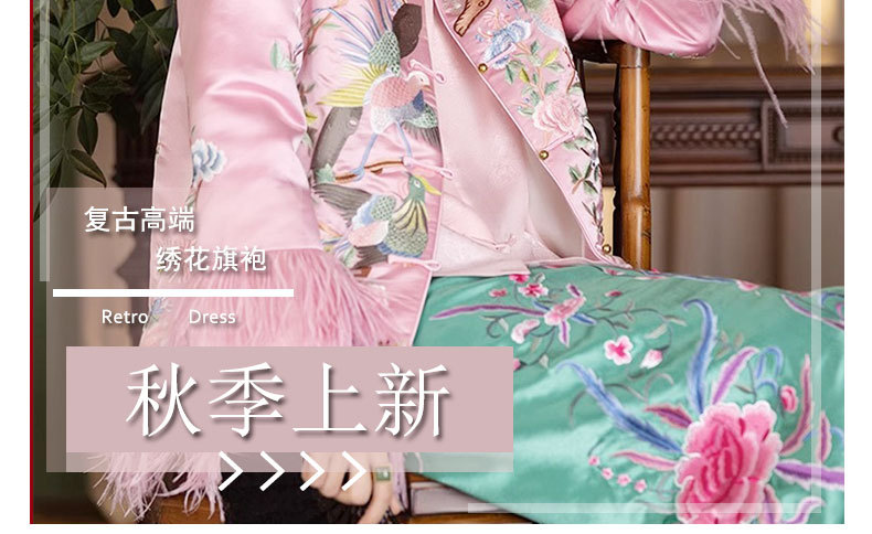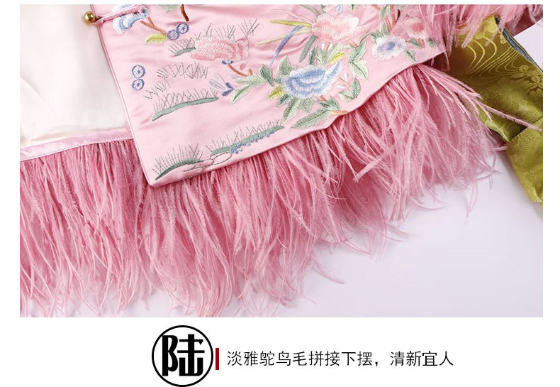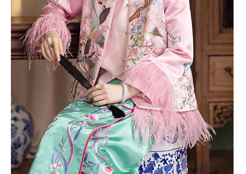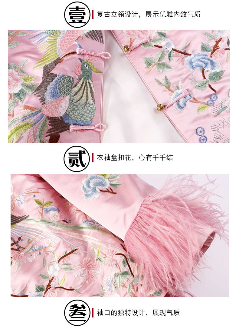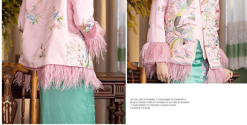 Autumn and Winter 2023 new improved cheongsam ostrich fur Chinese retro small jacket heavy-duty embroidered quilted coat for women