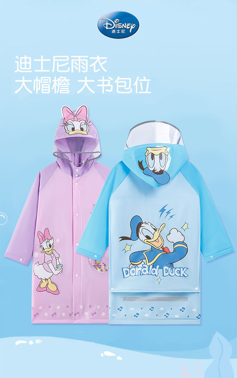 Disney children's raincoat poncho boys and girls kindergarten Primary School students cute cartoon strap schoolbag seat EVA Daiyu
