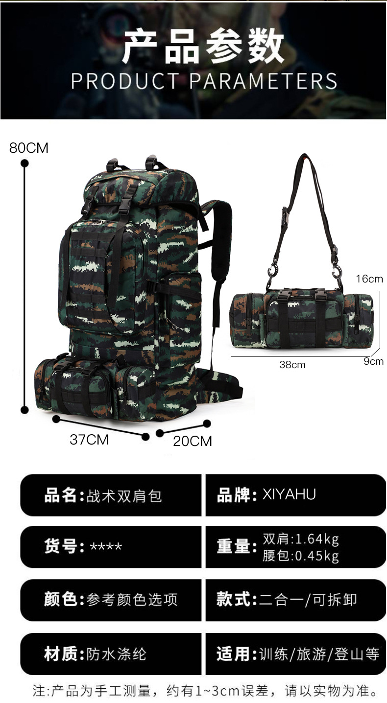 Foreign trade new outdoor mountaineering backpack 80 L combination backpack detachable sports hiking backpack