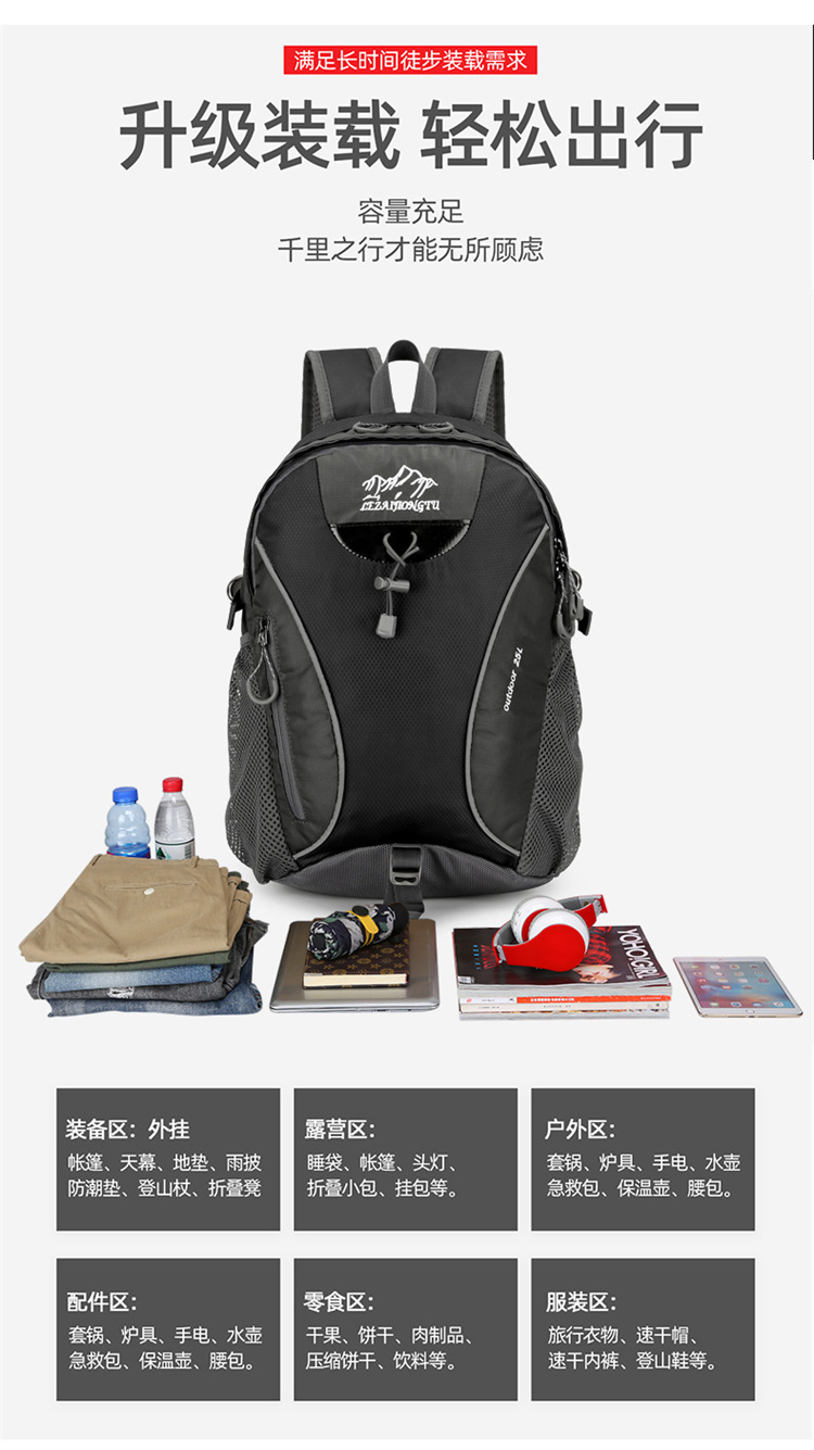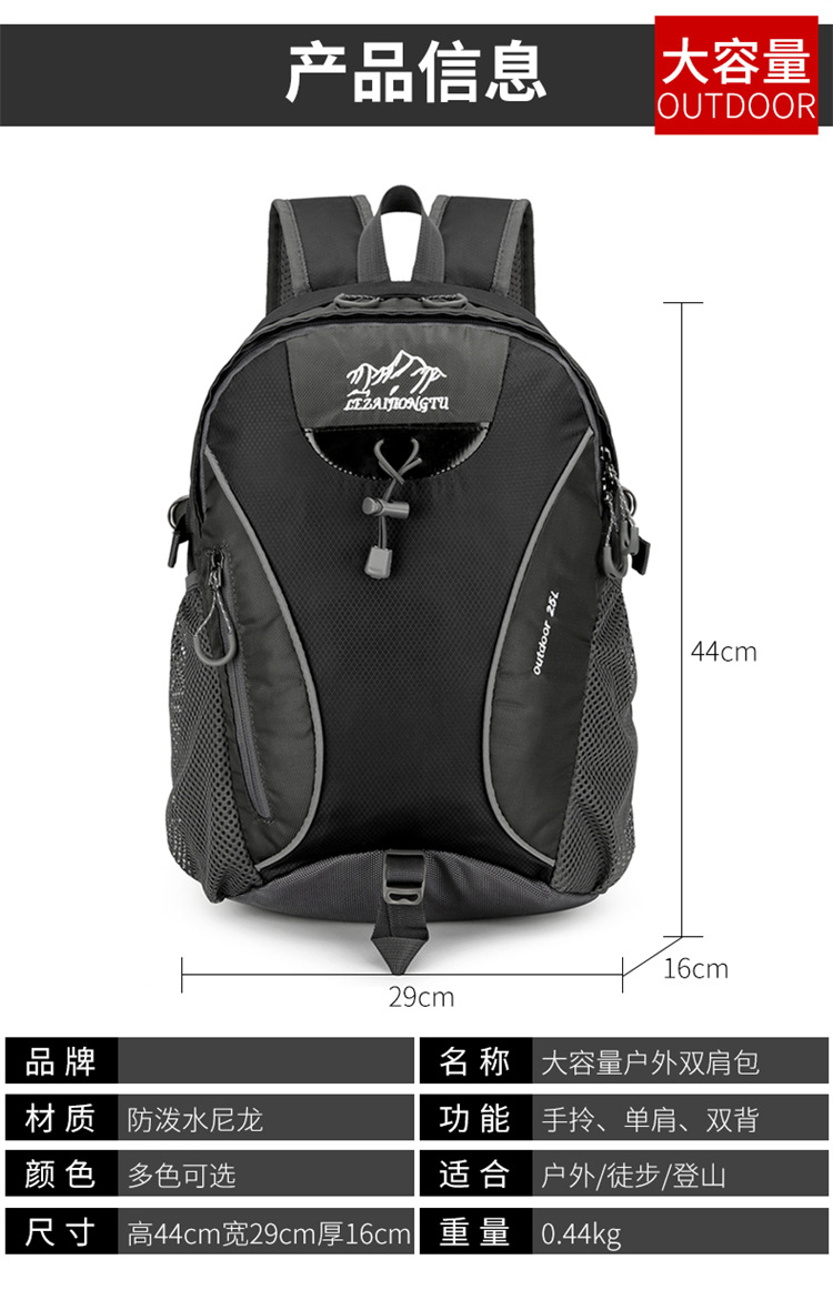 25L Outdoor Hiking Bag Travel Bag Men's and Women's Backpack Hiking Backpack Lightweight Waterproof Sports Backpack Spring Mountain Climbing
