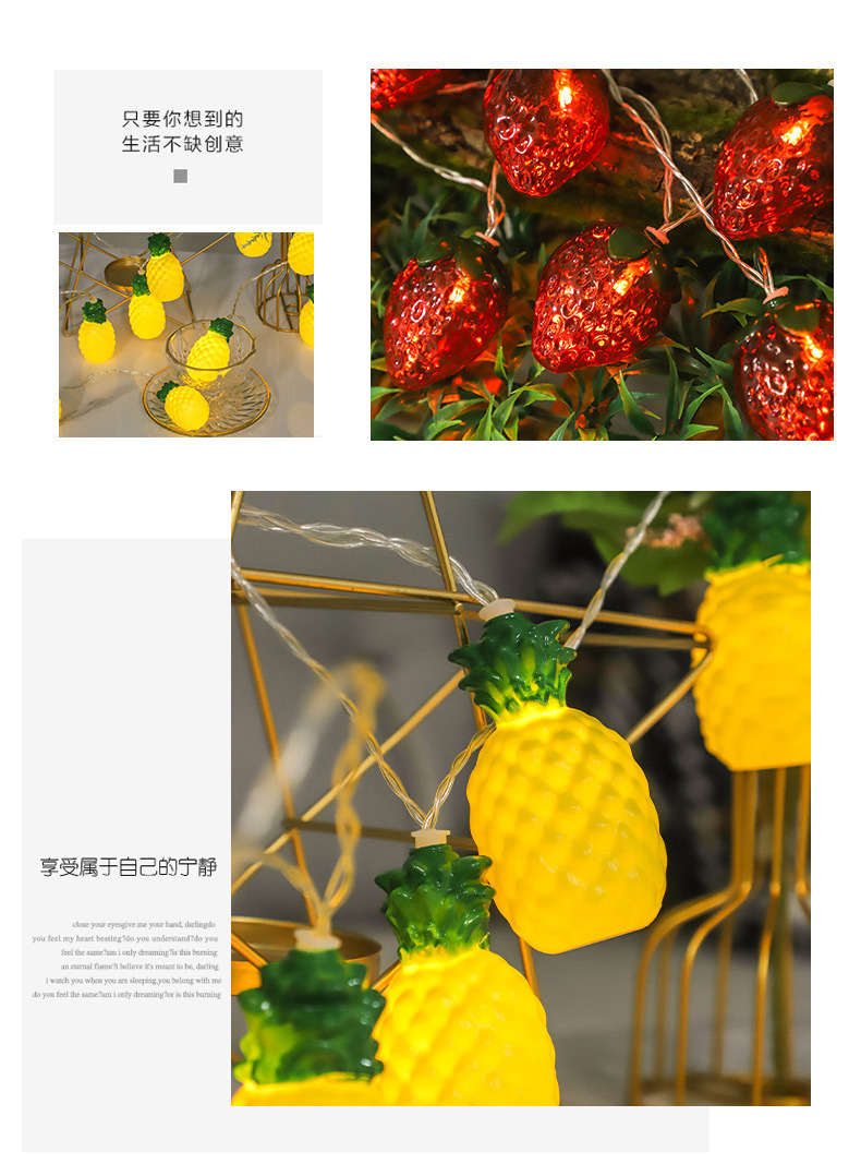 2022 new led strawberry light string children's room indoor pineapple decorative light pendant scene layout photo props