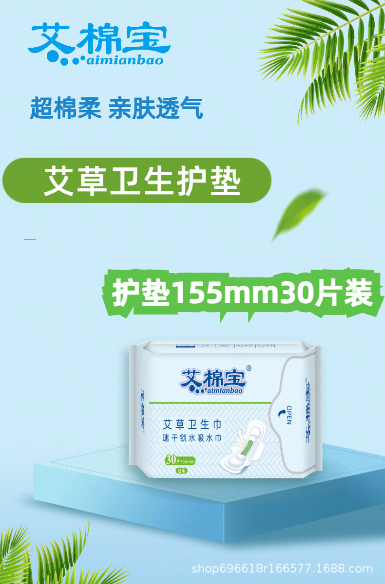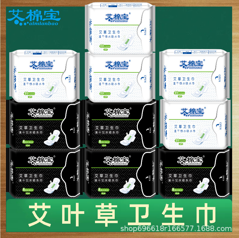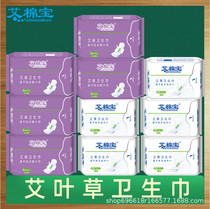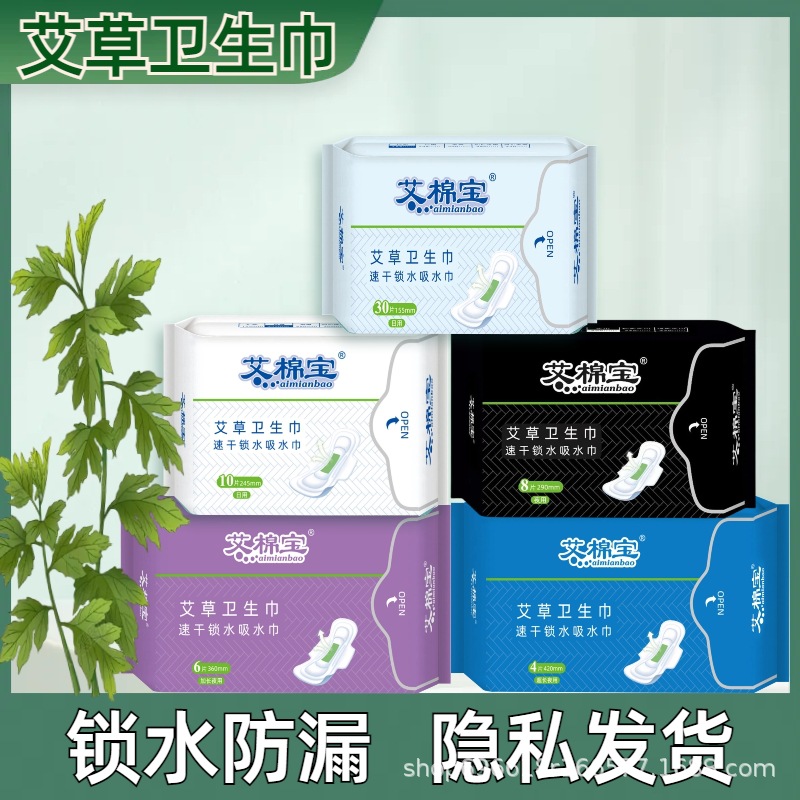 Wormwood sanitary napkin combination whole box daily night pad skin-friendly cotton soft ultra-thin breathable aunt towel