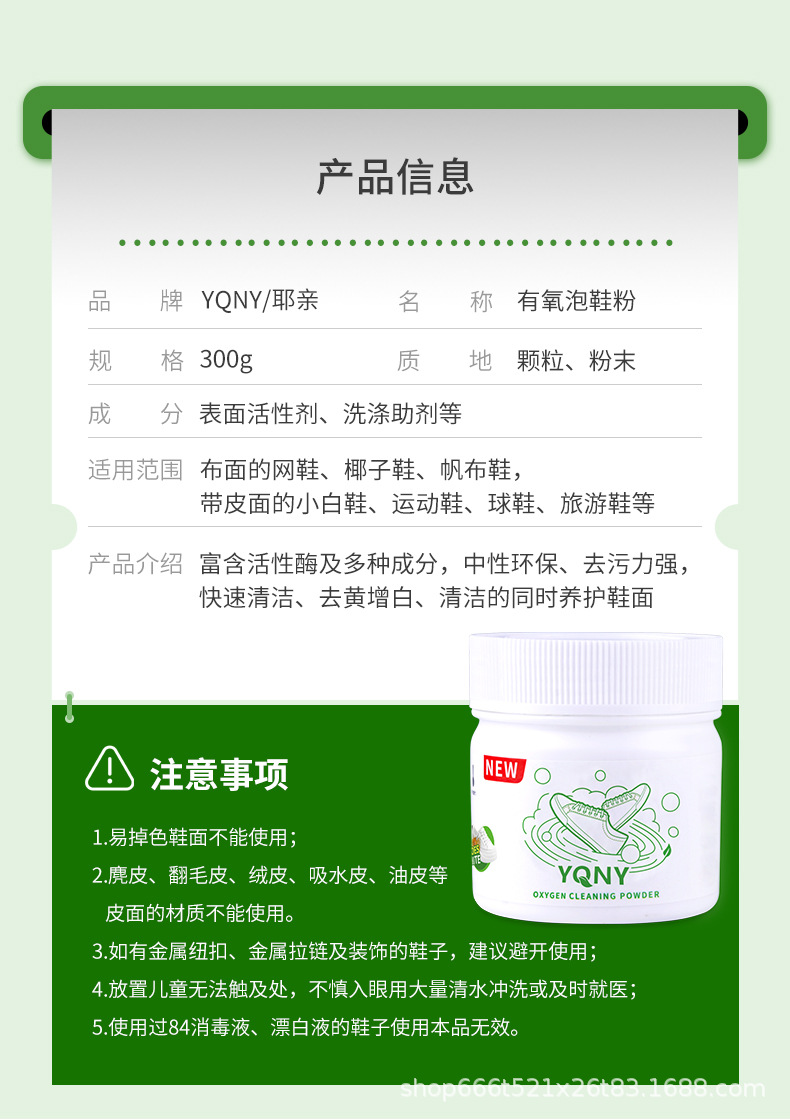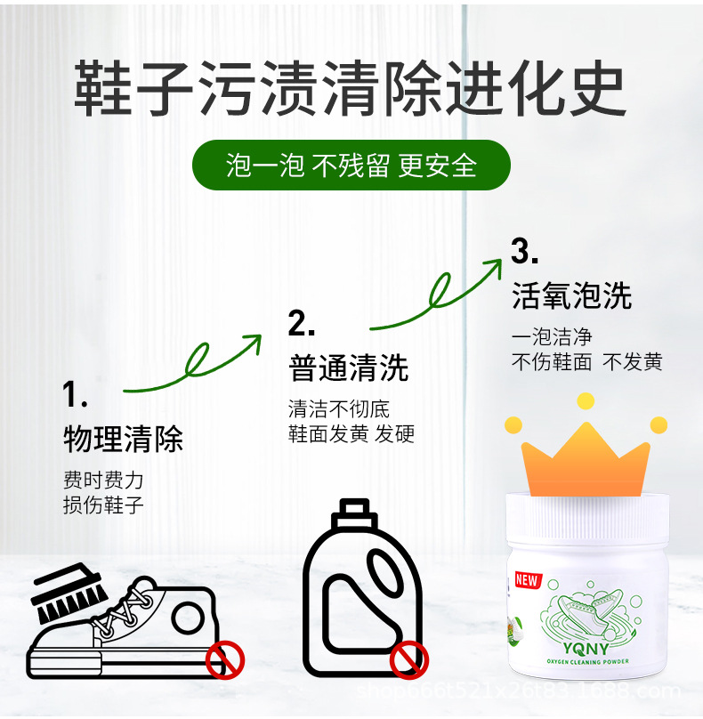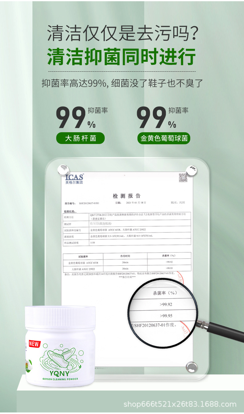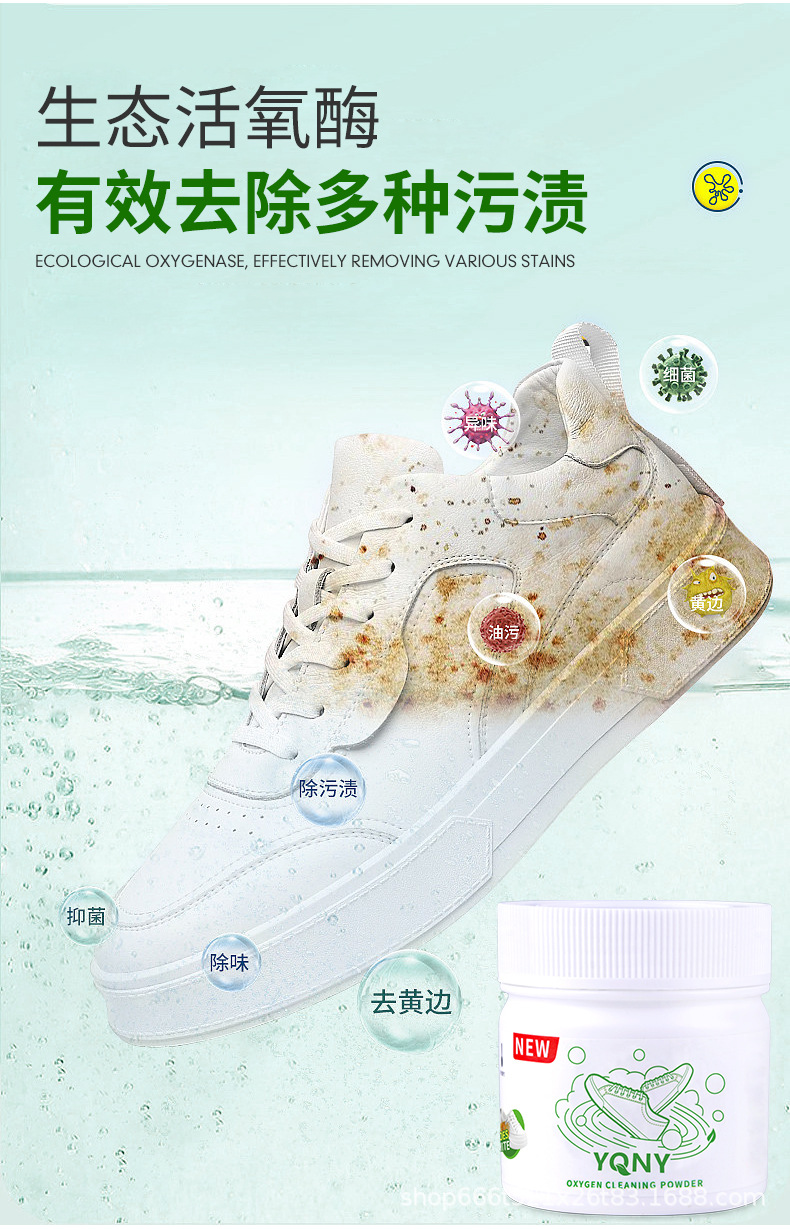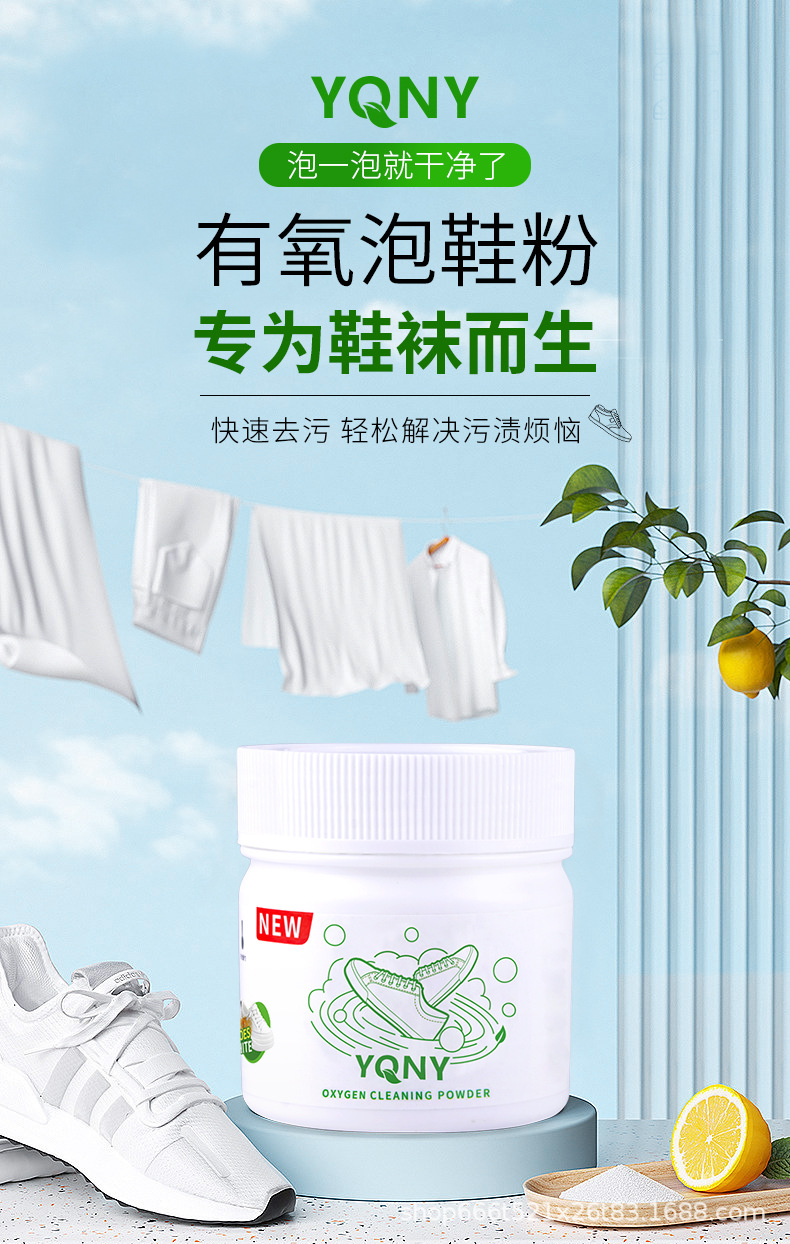 Full-Net hot sale YQNY Ye pro-biological enzyme bubble shoe powder to remove yellow, decontamination and whitening household bleach white shoes Universal