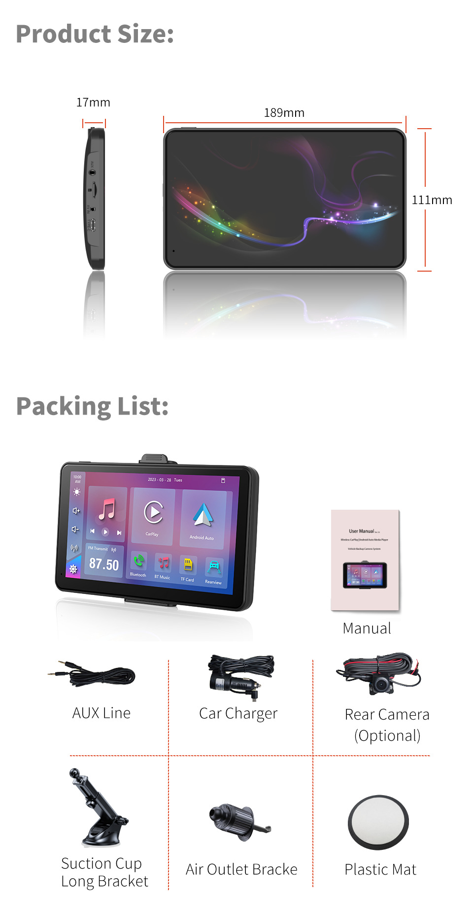 Navigation mirror 7-inch portable wireless CarPlay car car navigator smart car machine interconnection Bluetooth PND