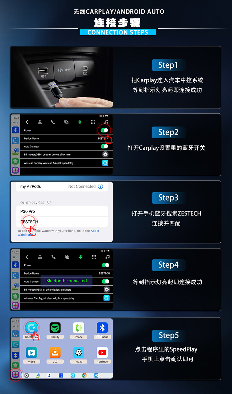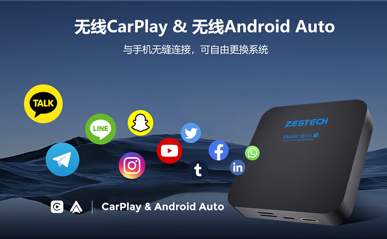 ZESTECH car navigation wired to wireless CarPlay box Android13carplay car box