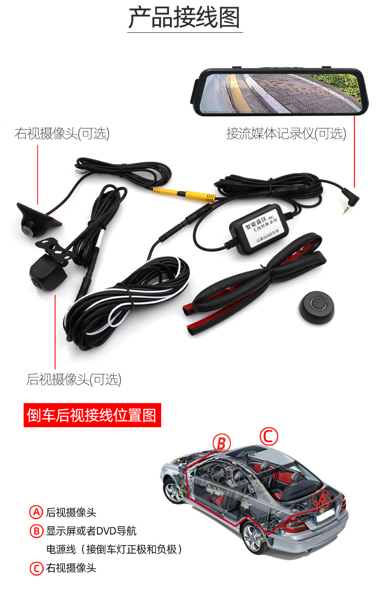Streaming media driving recorder right blind area HD dvr rear shadow ccd car ahd reversing camera