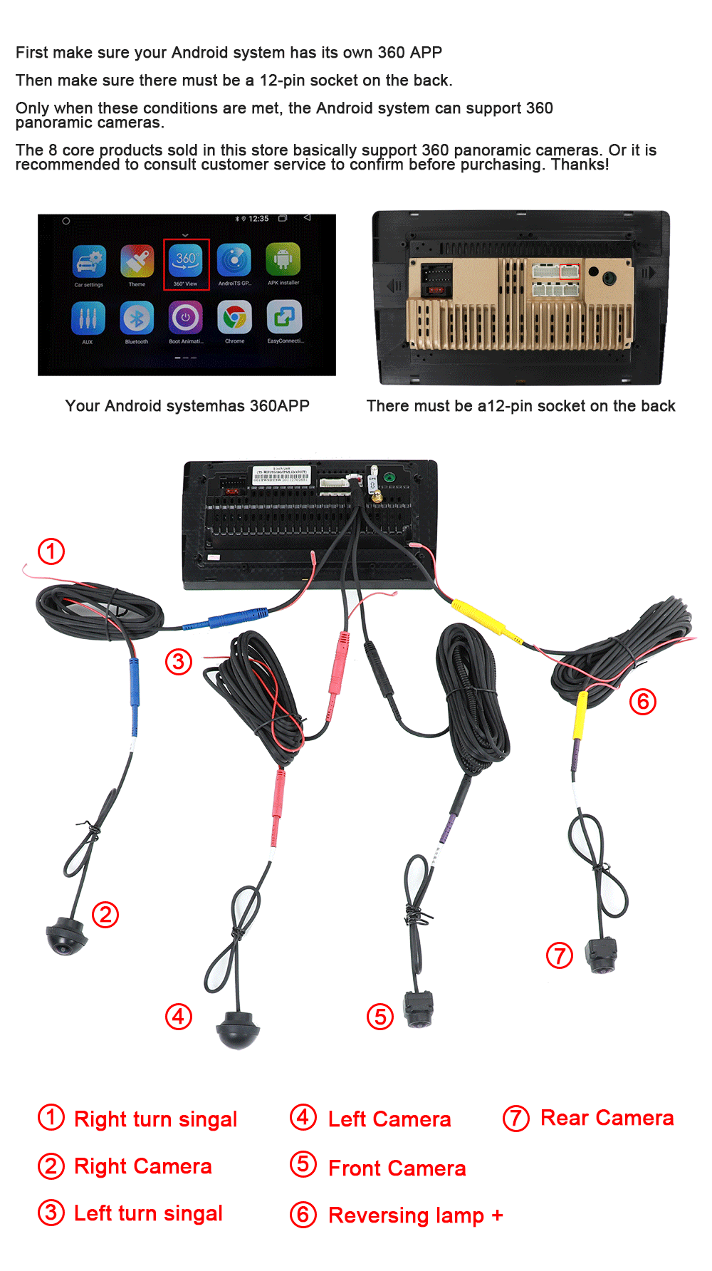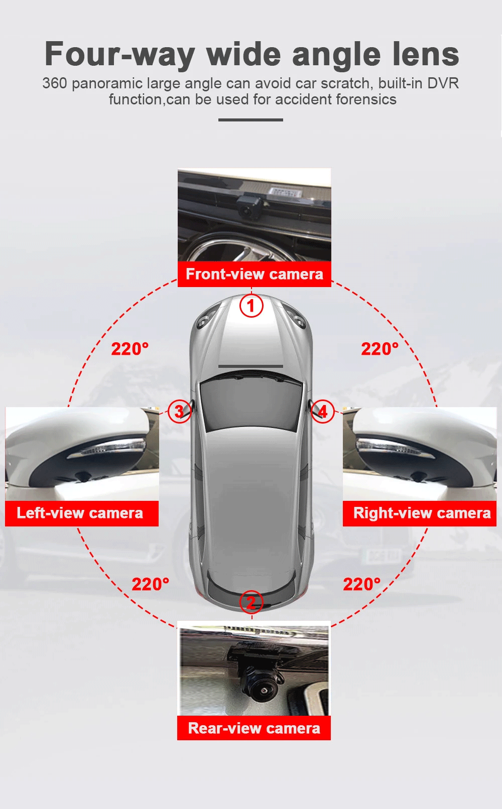 360 Panoramic Image System Blind Zone Car Side View HD Rear View Image Waterproof 360 Panoramic Camera
