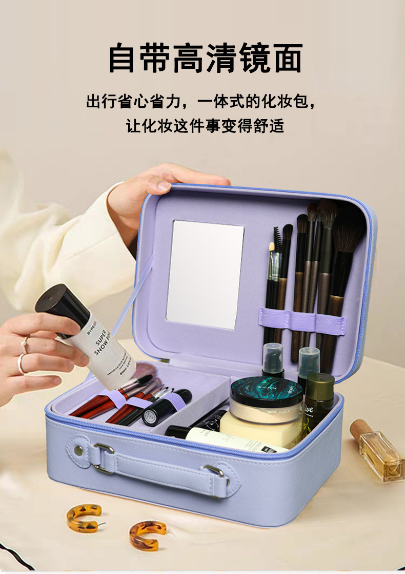 Km Cosmetic Bag Ins Style Student Portable Travel Cosmetic Storage Box Large Capacity Hard Shell Three-dimensional Makeup with Mirror