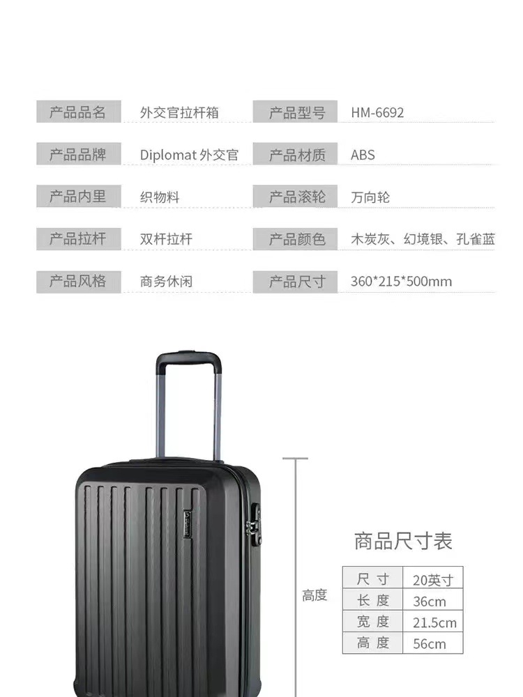Diplomat Diplomat password box universal wheel trolley case HM-6692 charcoal gray 20-inch