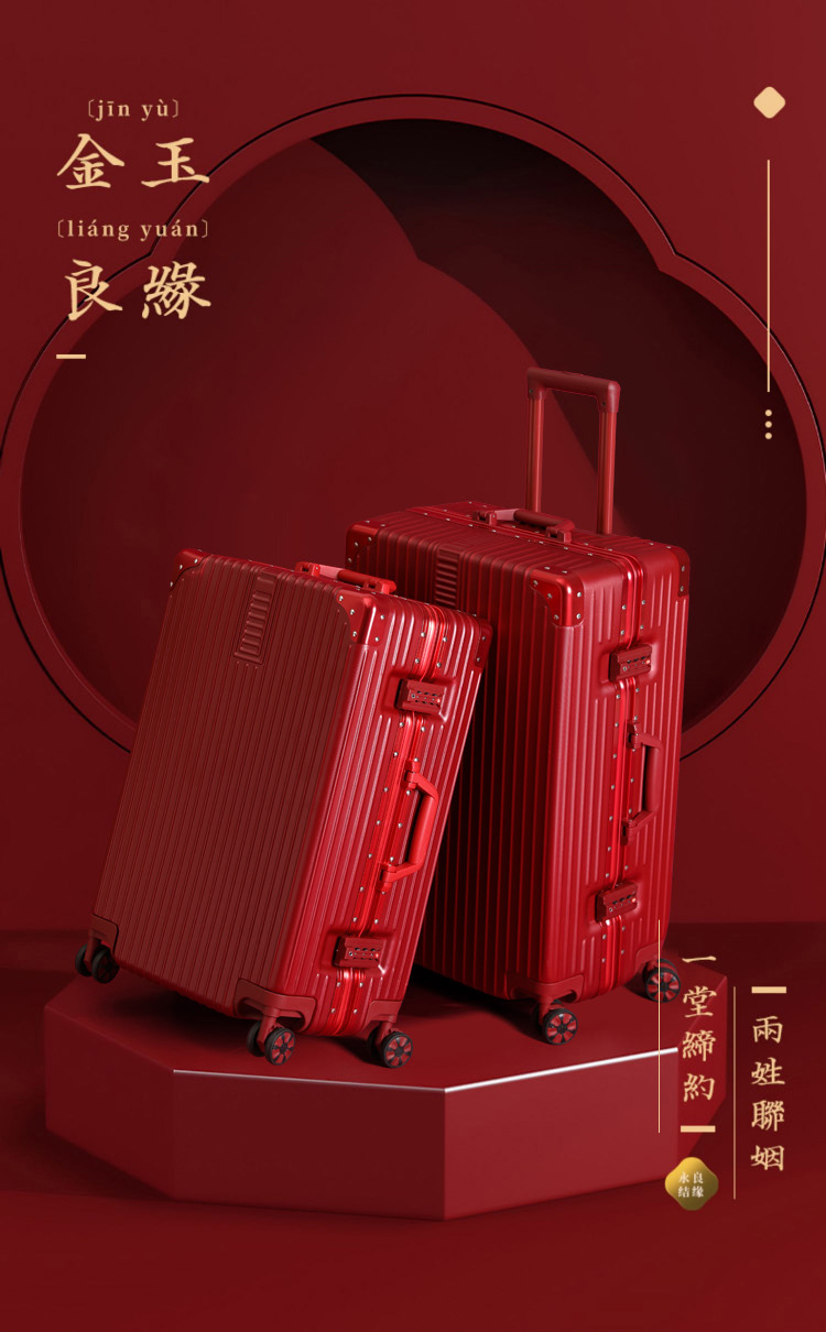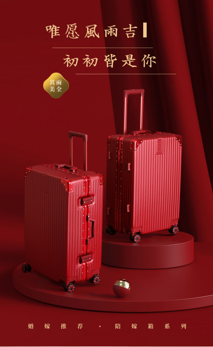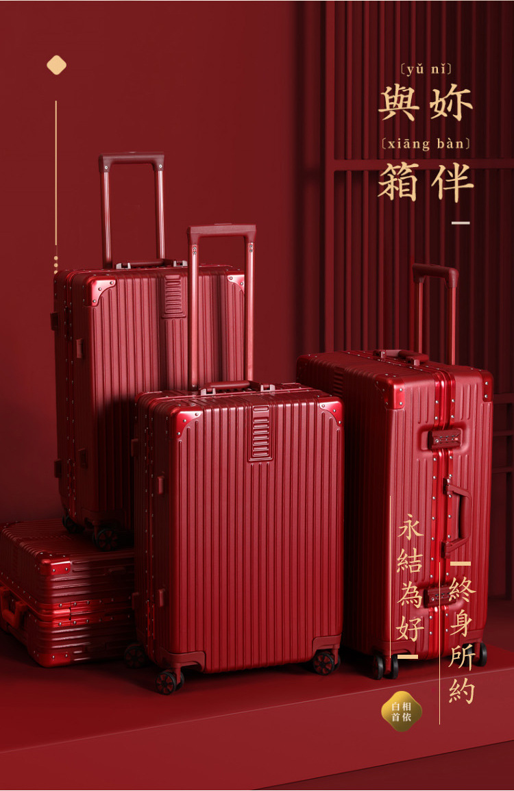 Wedding Luggage Case Dowry Case Red Leather Case Bride Trolley Case Women's Wedding Password Dowry Case Pair