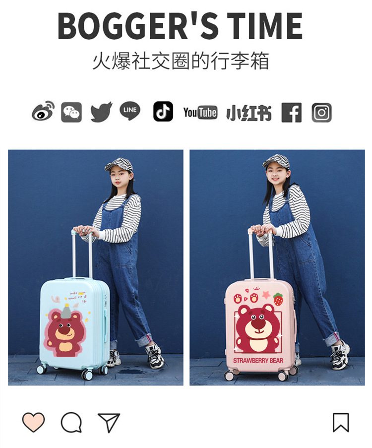 Cartoon Luggage Girl High-value Cute Luggage Trolley Case Student 2024 New Children Male Strong and Durable
