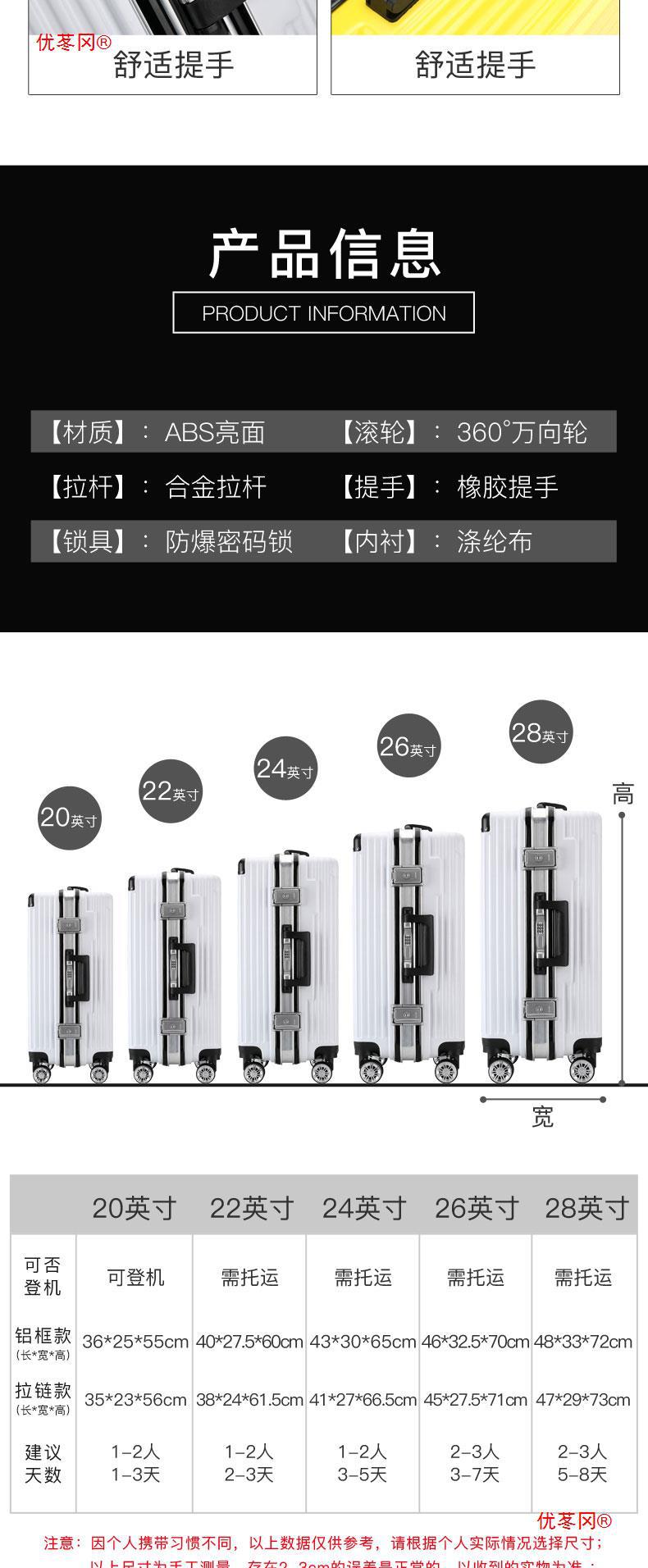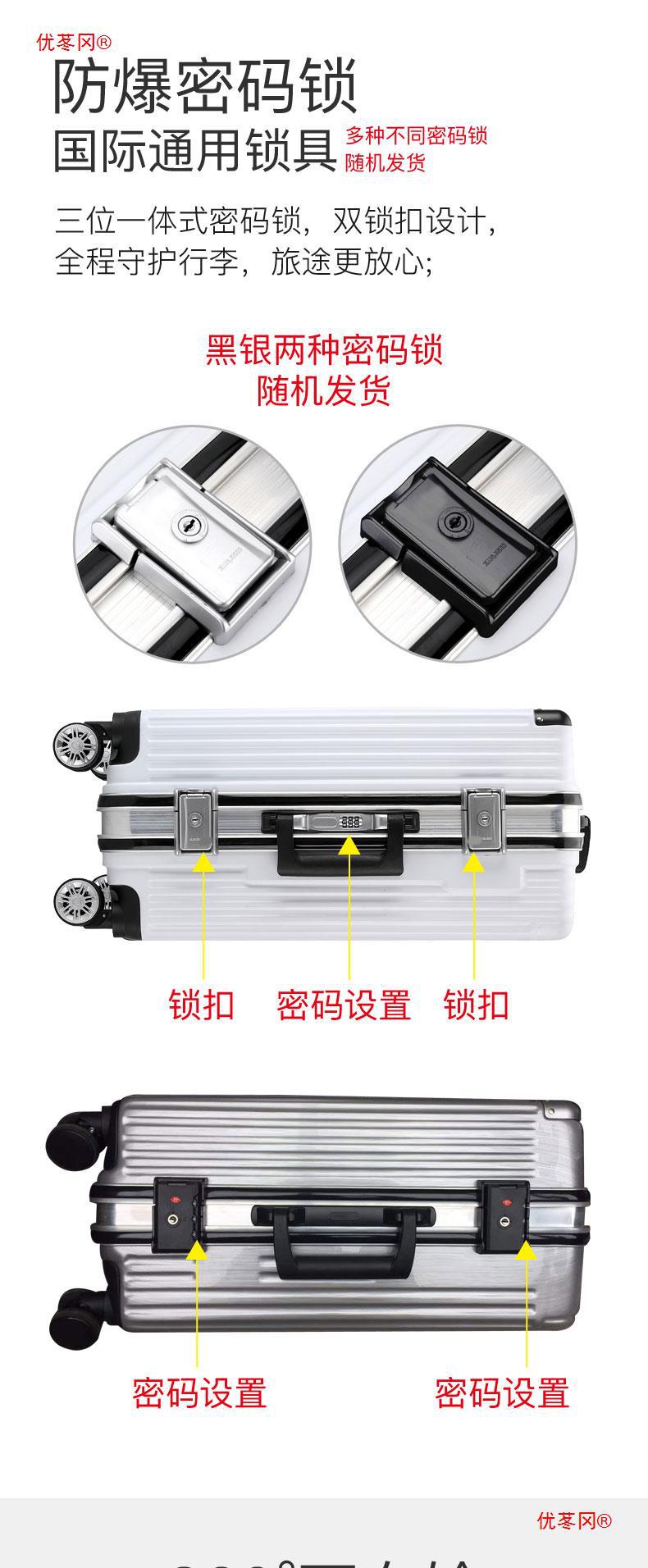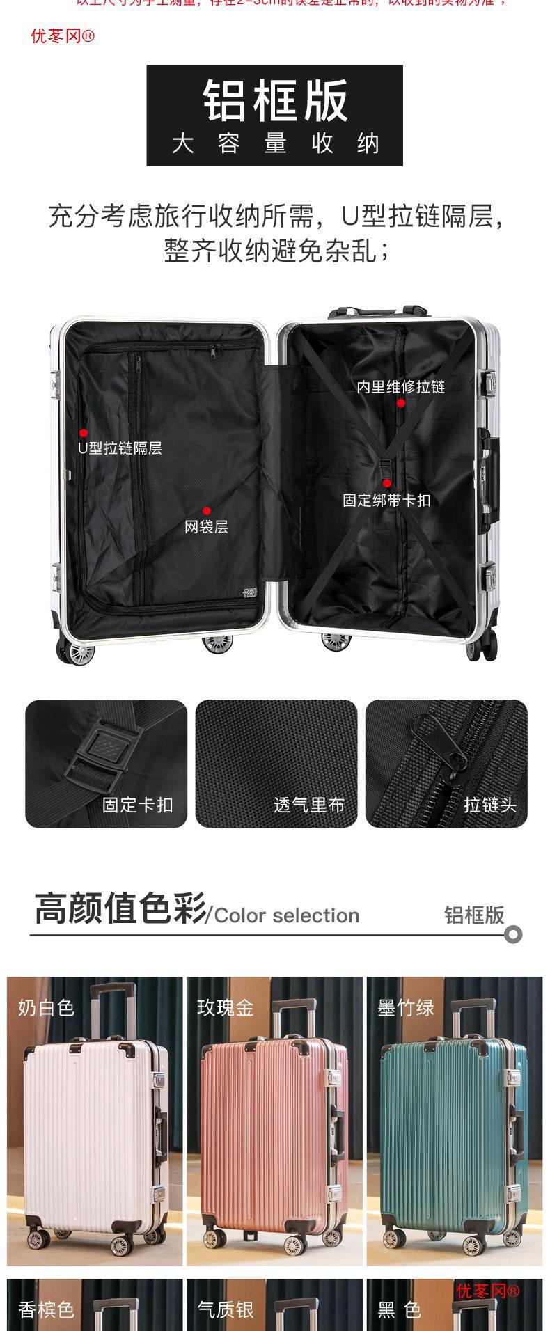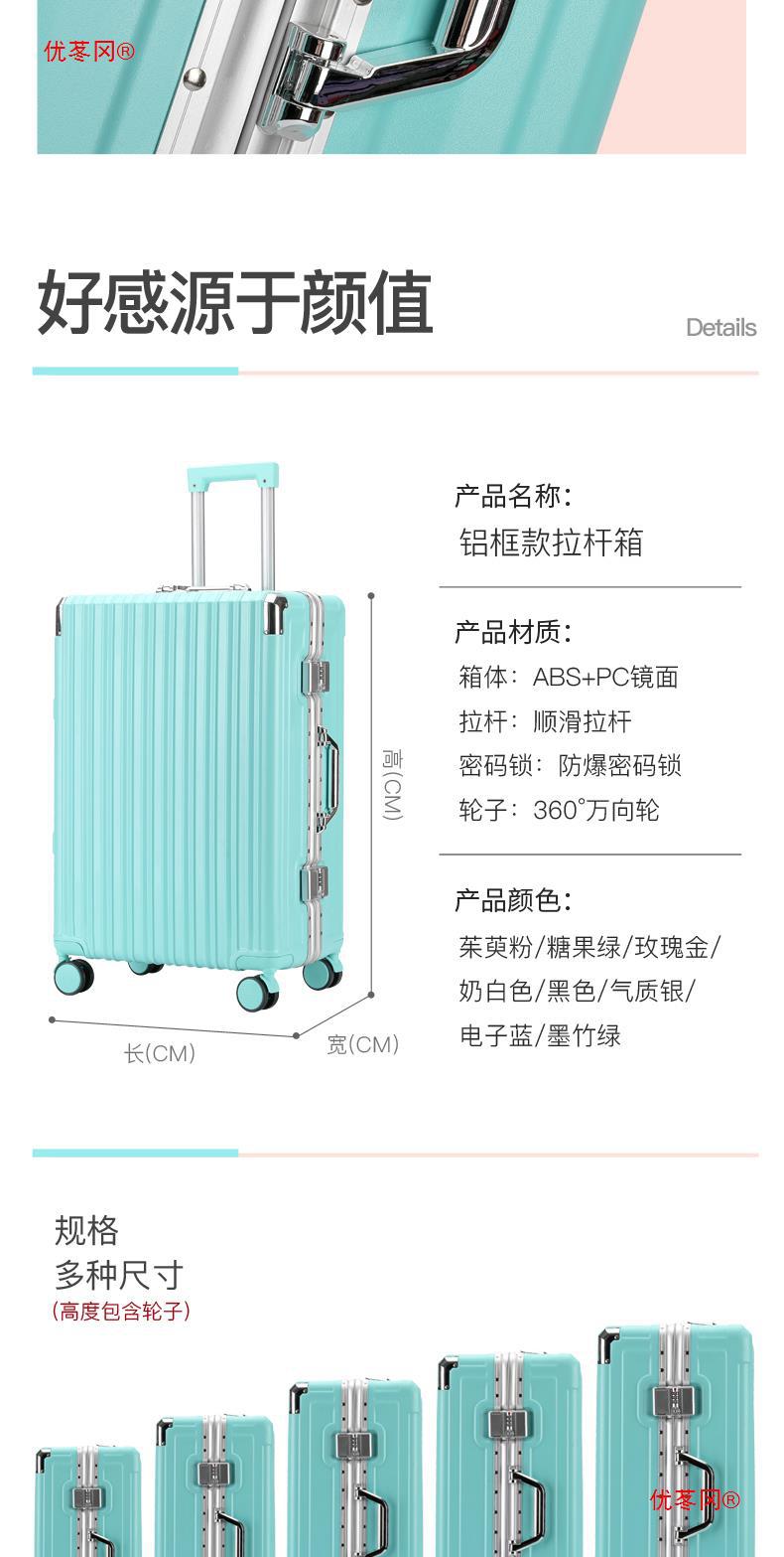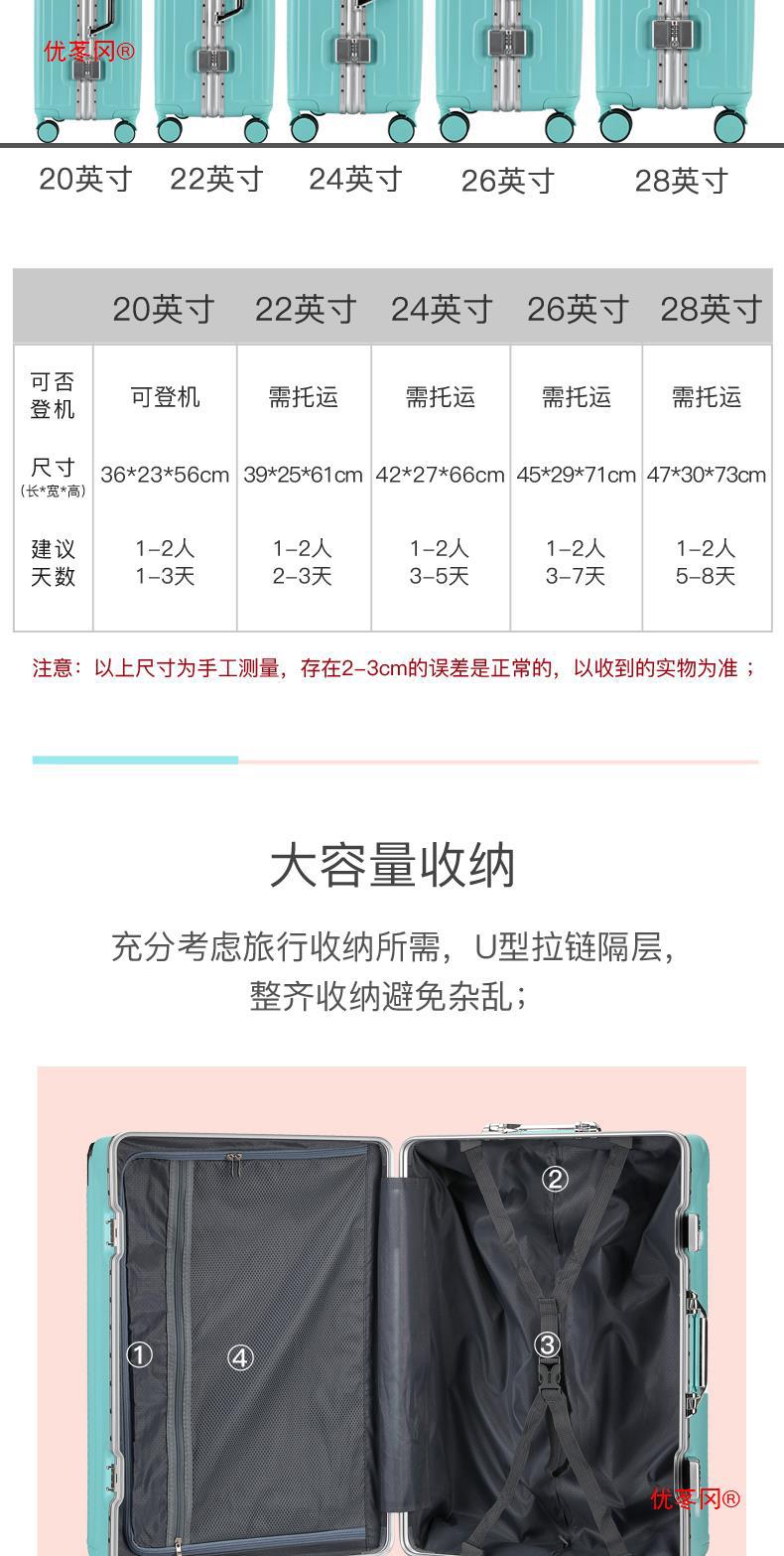 Luggage men's 20 aluminum frame trolley boarding case female student small password leather case strong and durable 24-inch universal wheel