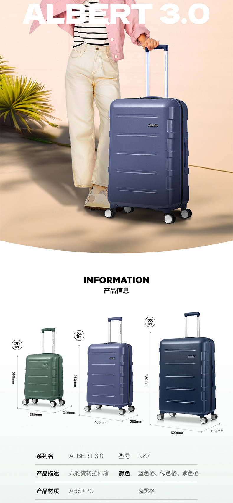 American travel trolley case 20-inch boarding case 28-inch universal wheel consignment case 24-inch zipper luggage NK7