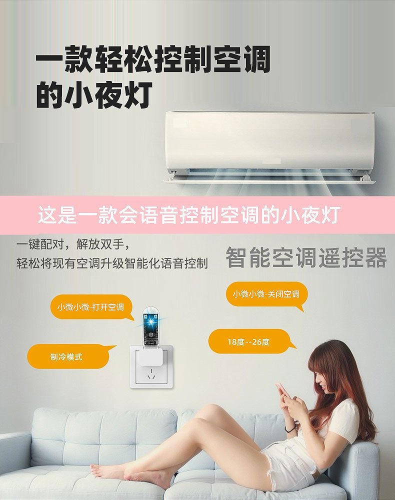 Air conditioning companion night light led bedside usb eye protection light lazy plug and play AI intelligent voice control air conditioning