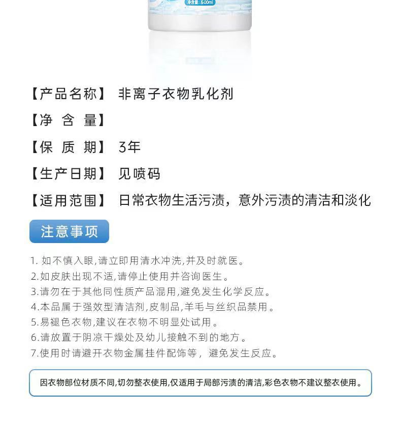 Zhongsanqing non-ionic clothing emulsifier detergent dry cleaning oil removing same style clothing collar cleaning clothing penetrant