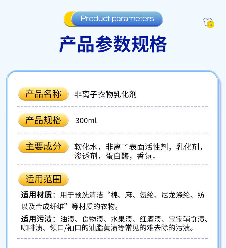 Explosive non-ionic clothing emulsifier degrease strong stain grease yellow clothes cleaner spray