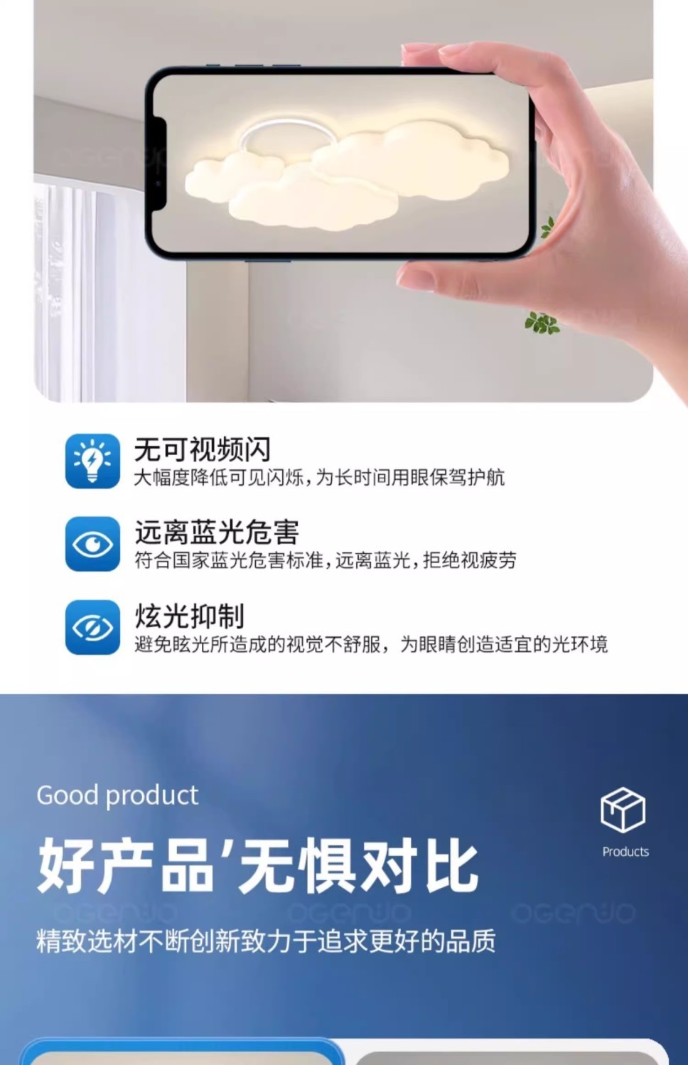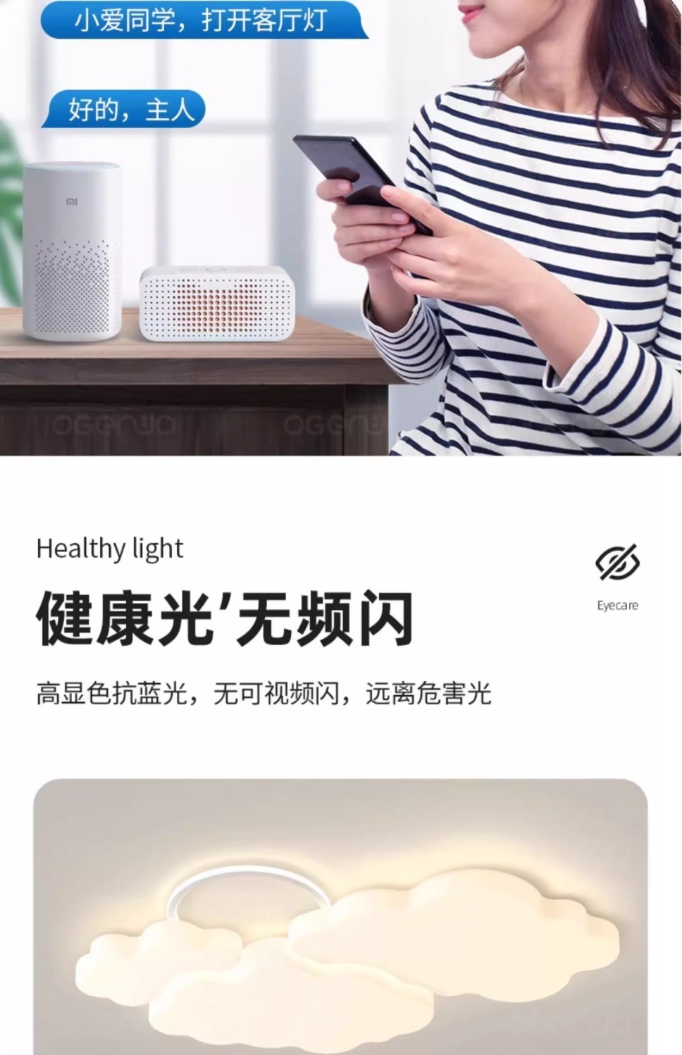 E8o living room lamp ceiling lamp full spectrum eye protection bedroom lamp cream wind net red ins cloud children's lamp full house set