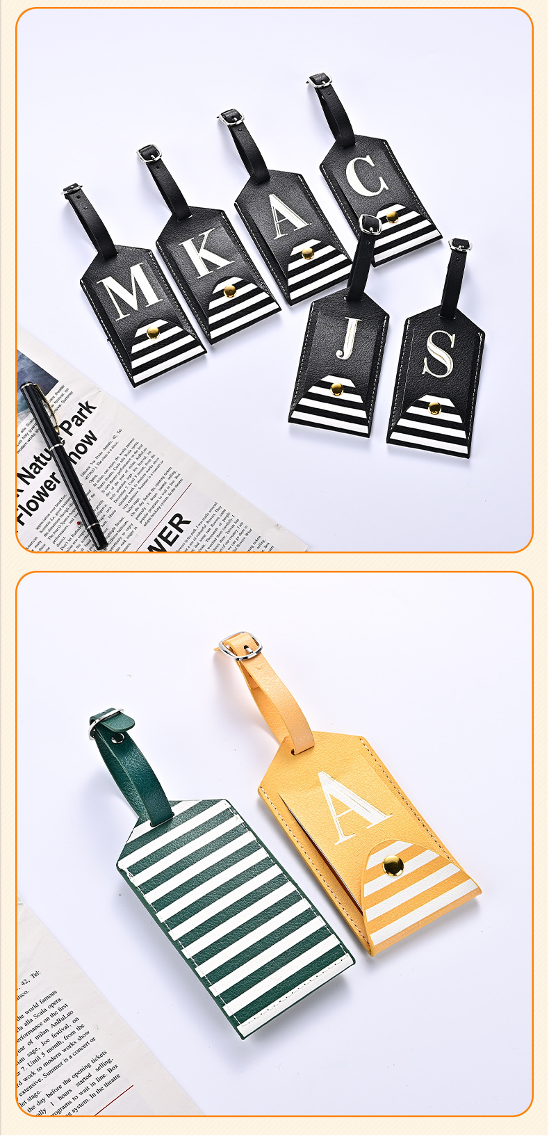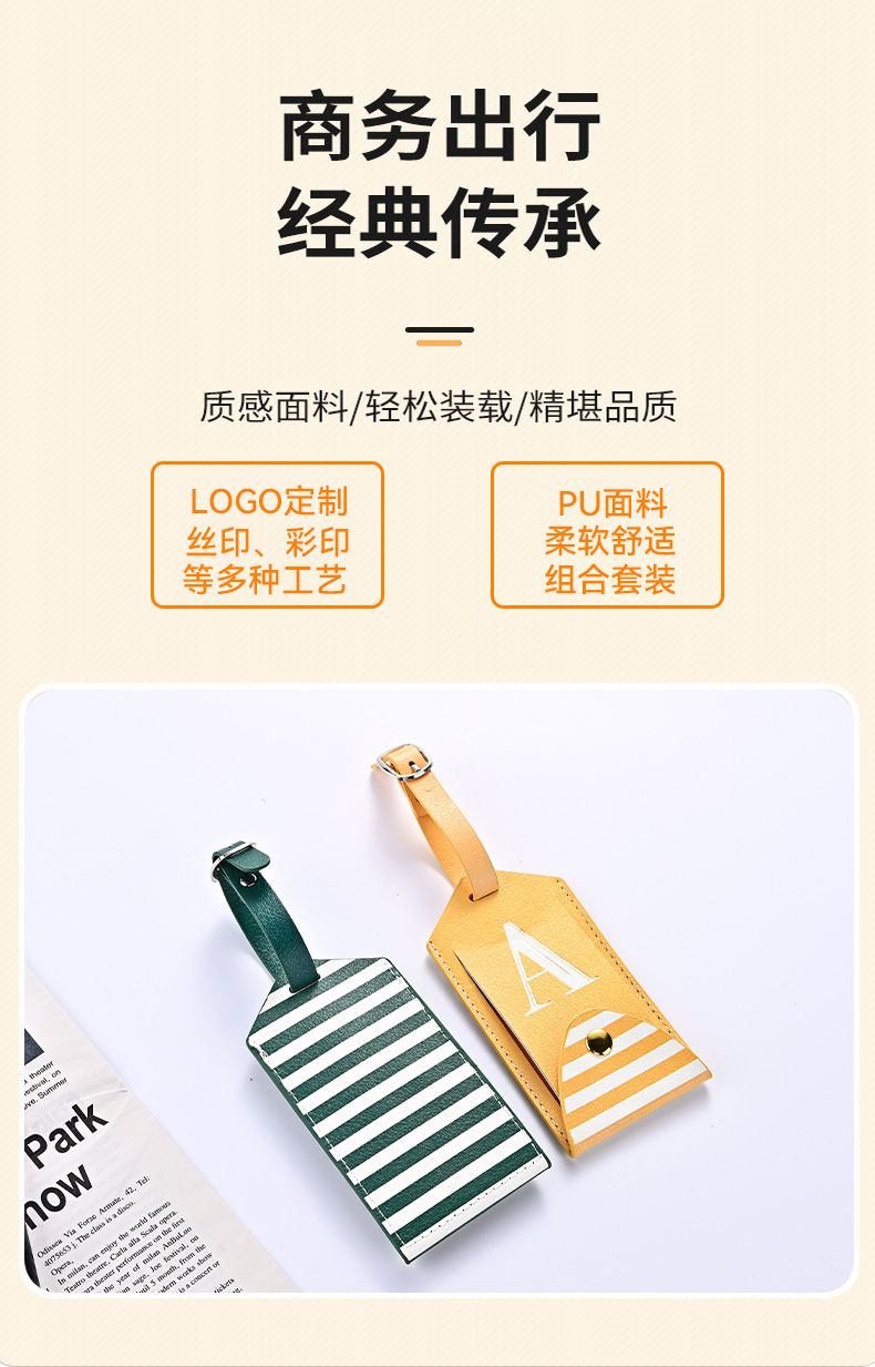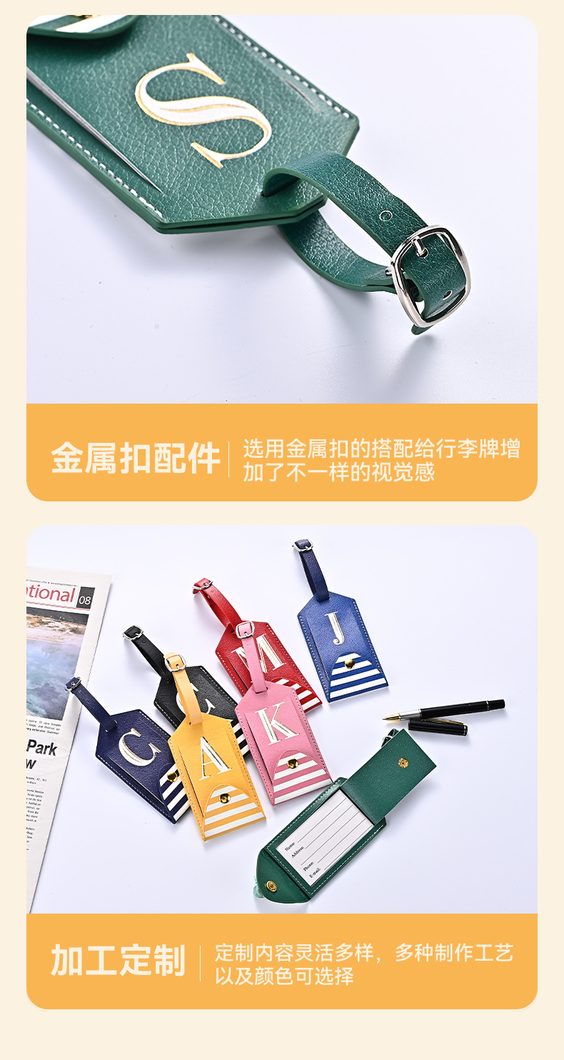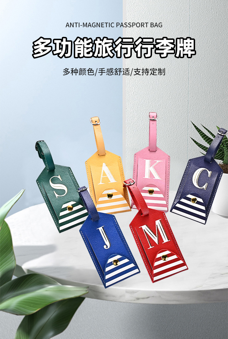 Cross-border pu leather luggage tag custom travel overseas ticket boarding pass anti-lost flip with Button in stock wholesale