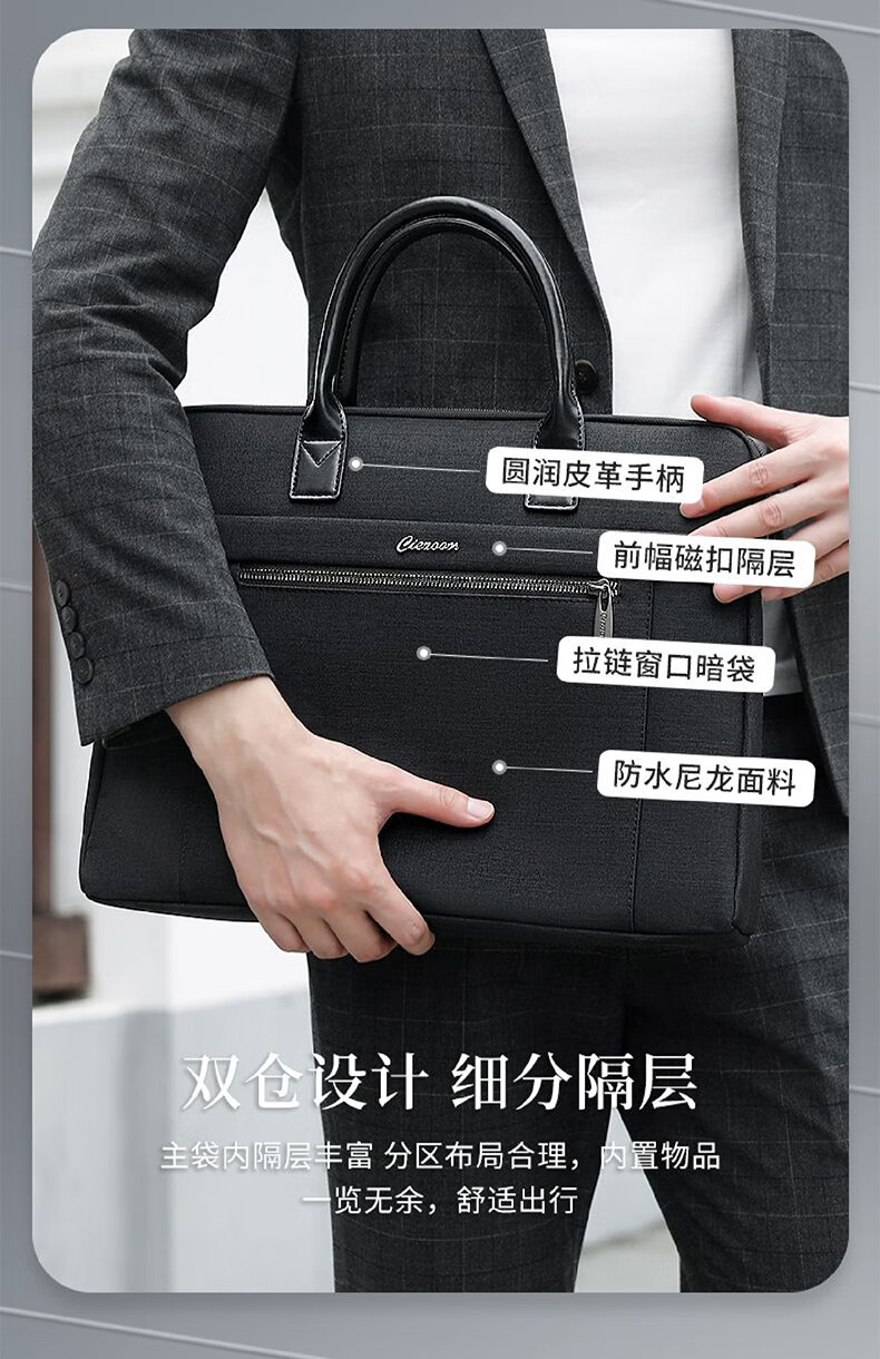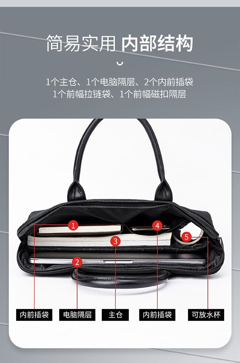 Business portable briefcase wear-resistant computer bag large capacity data Office Business bag conference bag water cup black
