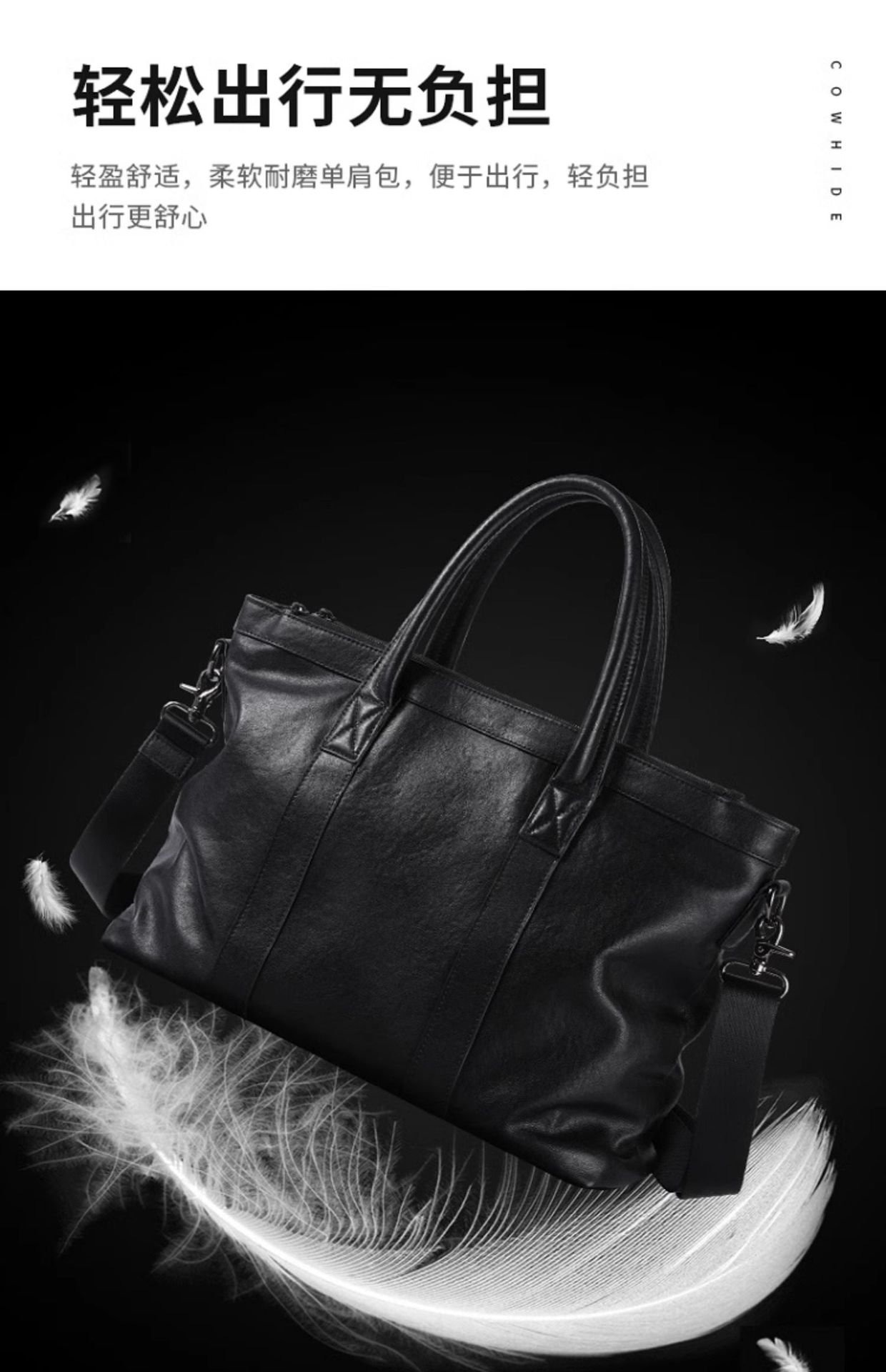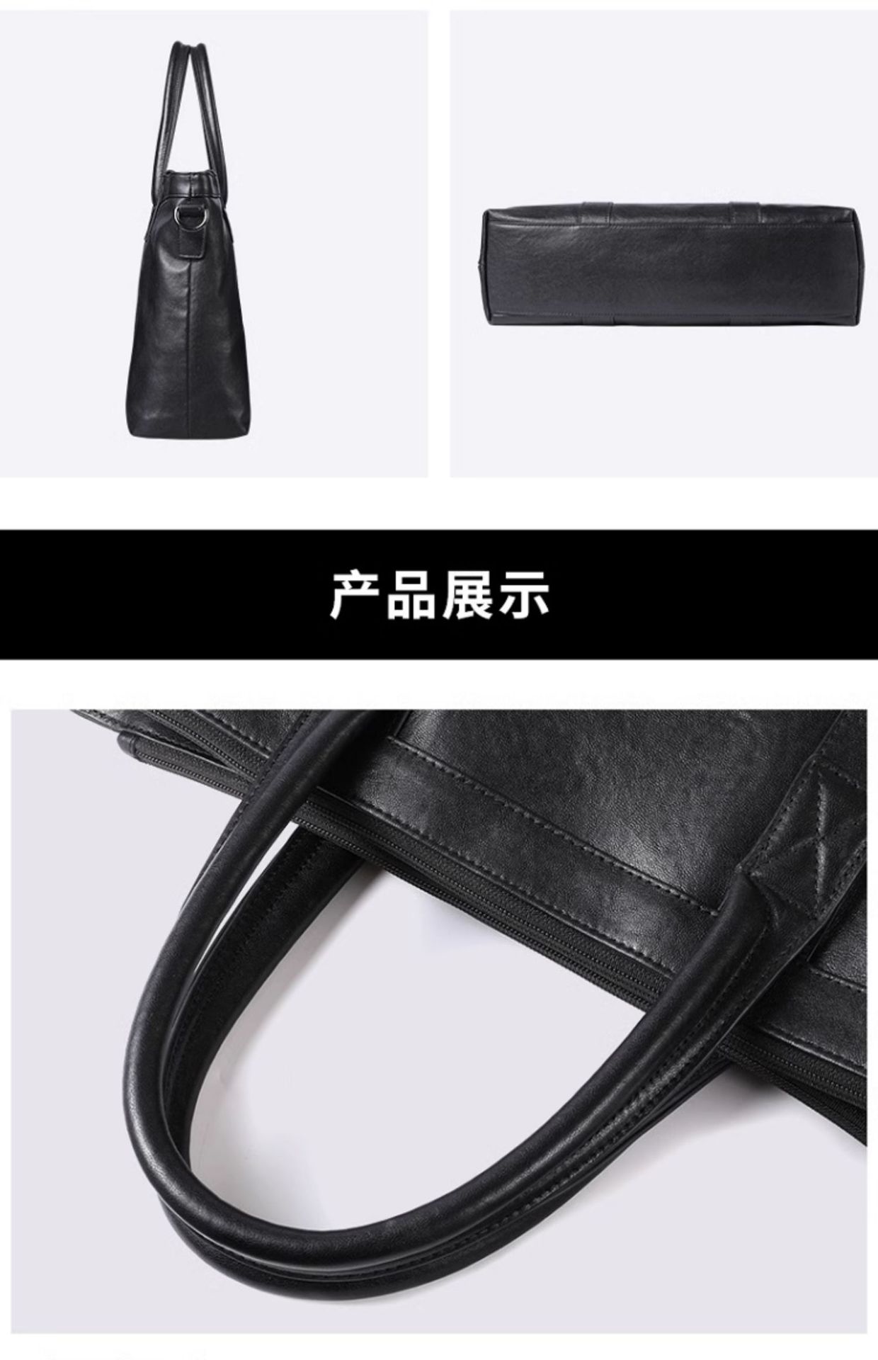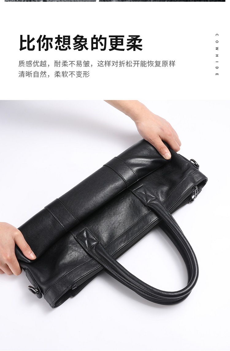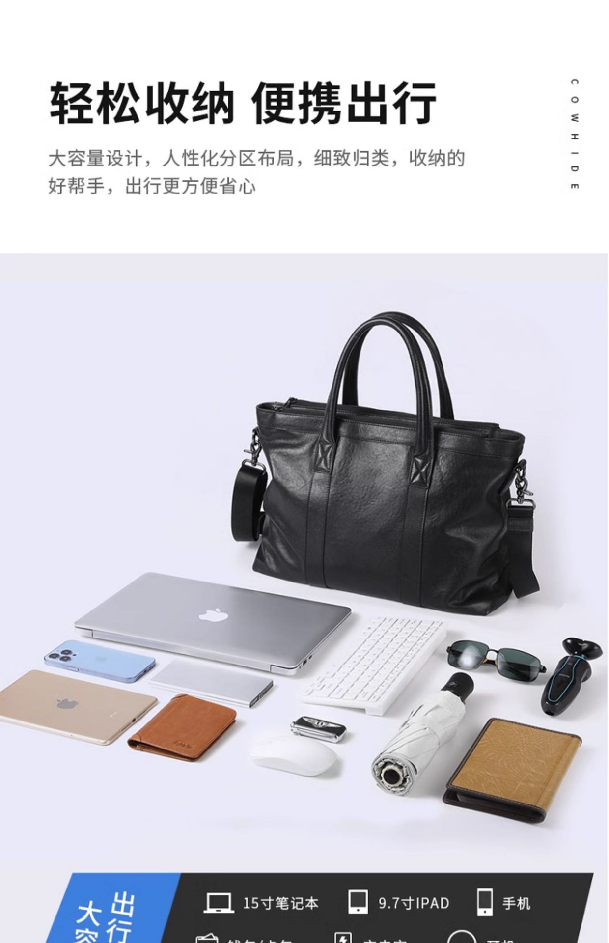 Men's Leather Briefcase Large Capacity Commuter Business Lawyer Handbag Top Layer Cowhide 15.6 Inch Computer Bag