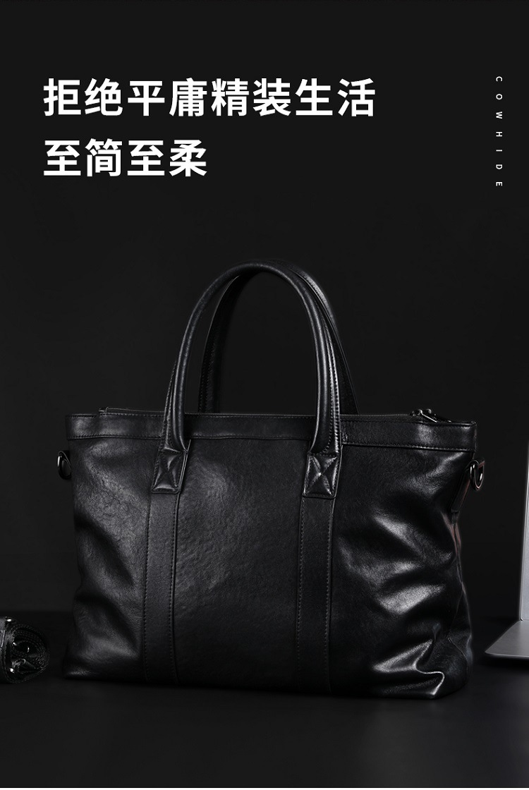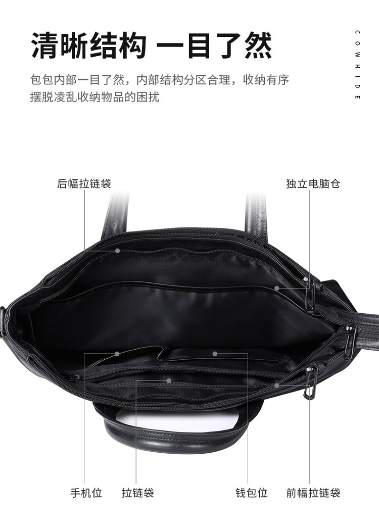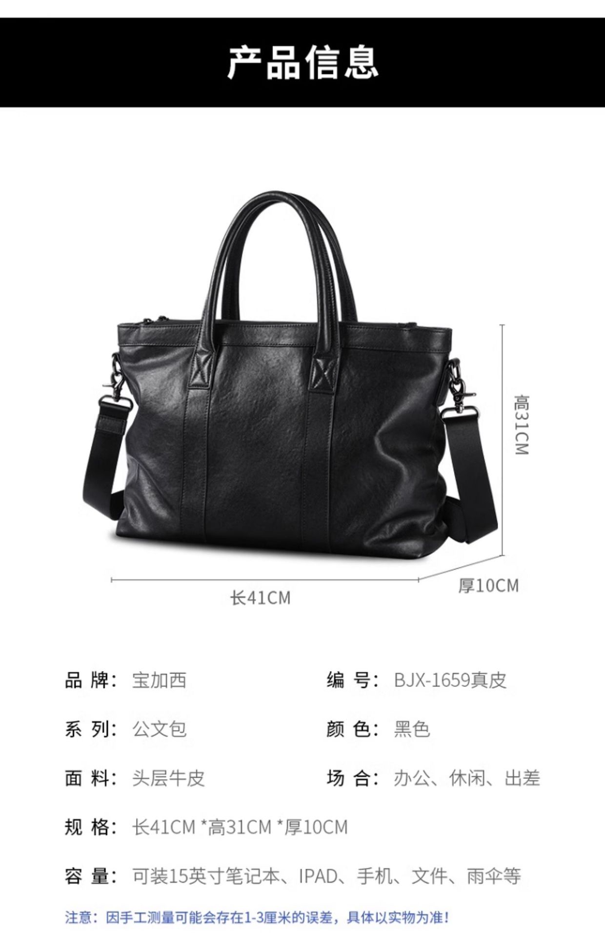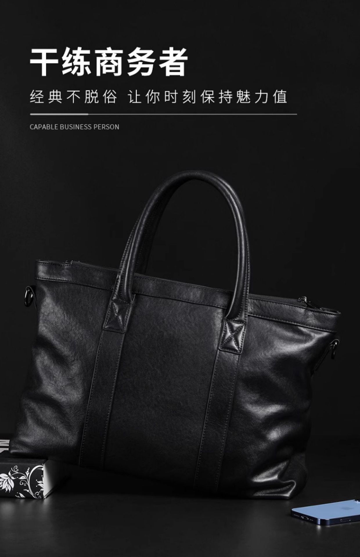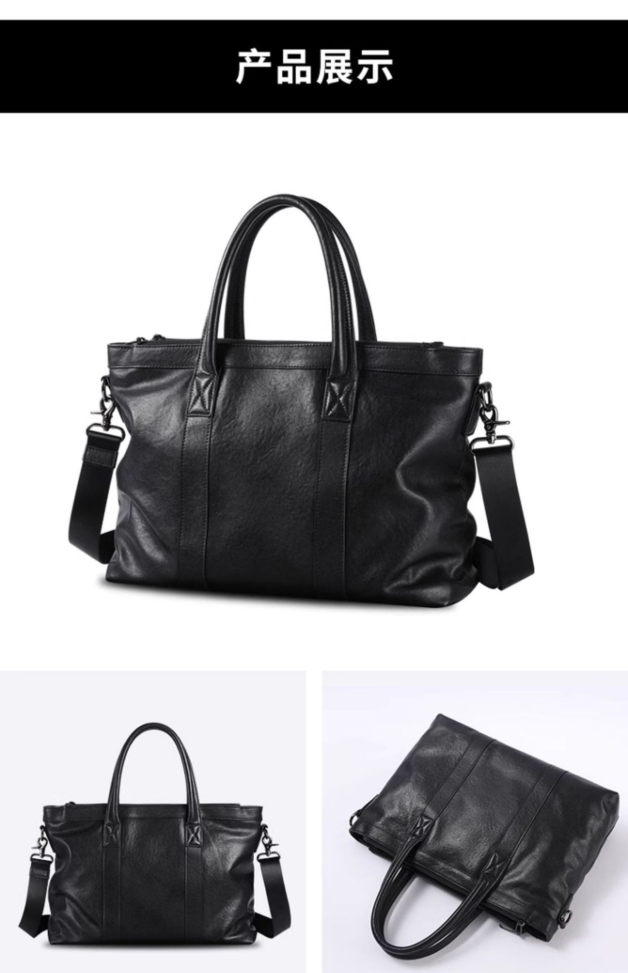 Men's Leather Briefcase Large Capacity Commuter Business Lawyer Handbag Top Layer Cowhide 15.6 Inch Computer Bag
