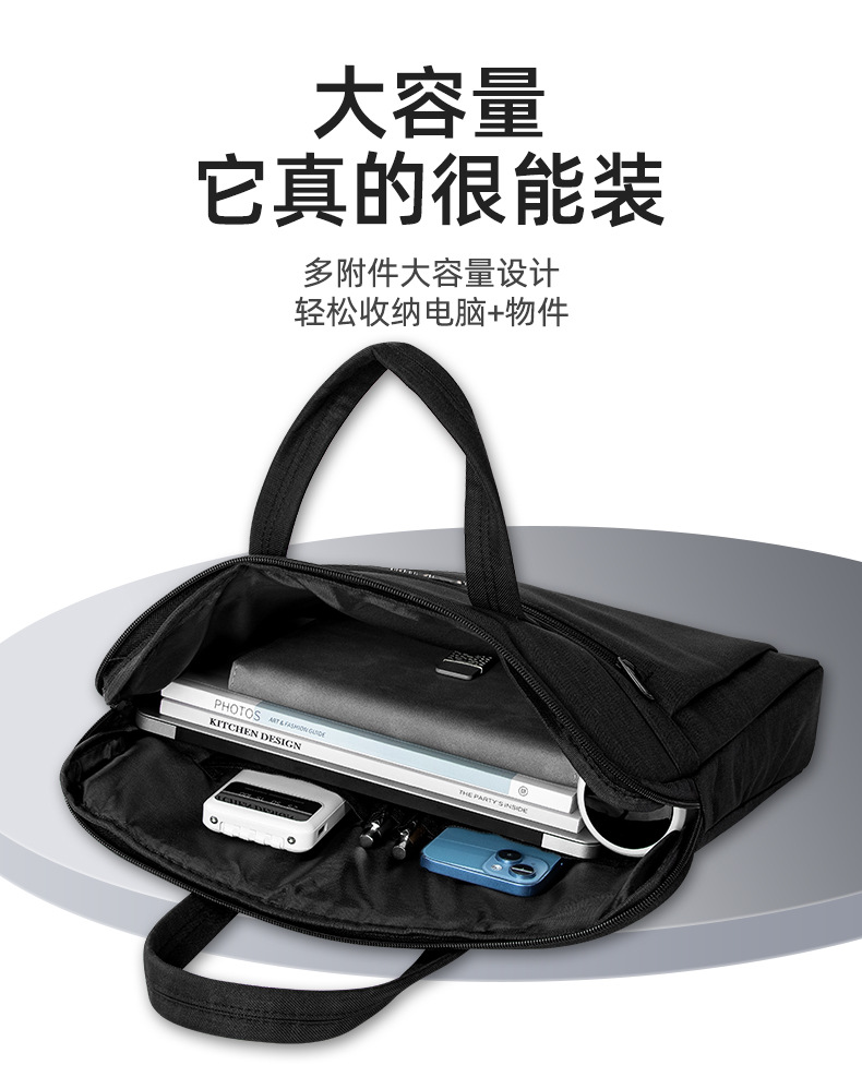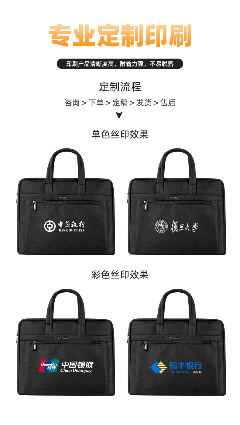 Men's Portable Briefcase Meeting Business Attendance Tablet Bag Waterproof Anti-wear Thickened Storage Bag Printed LOGO