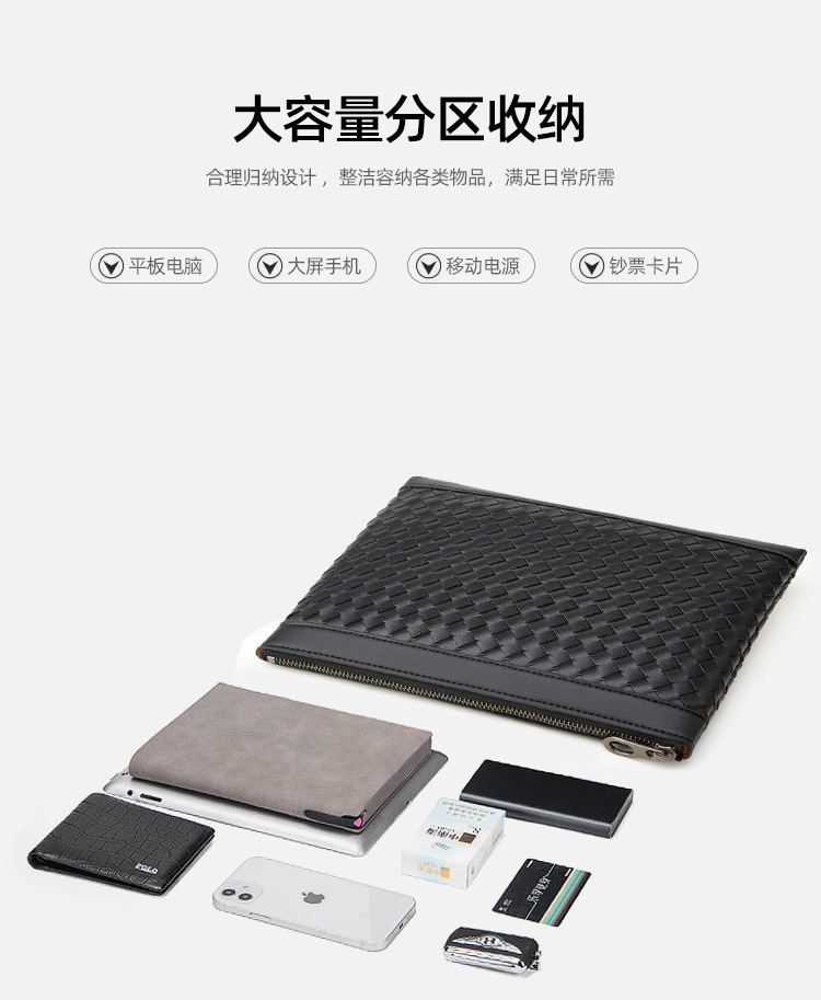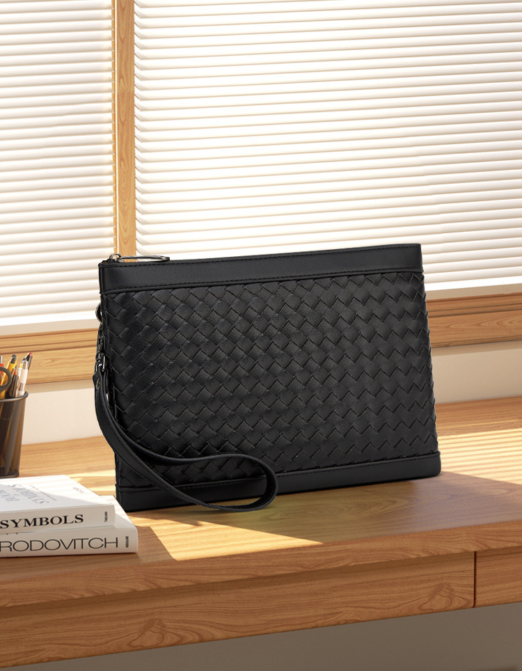New hand-woven men's clutch multi-card simple soft leather clutch business commuter mobile phone coin purse