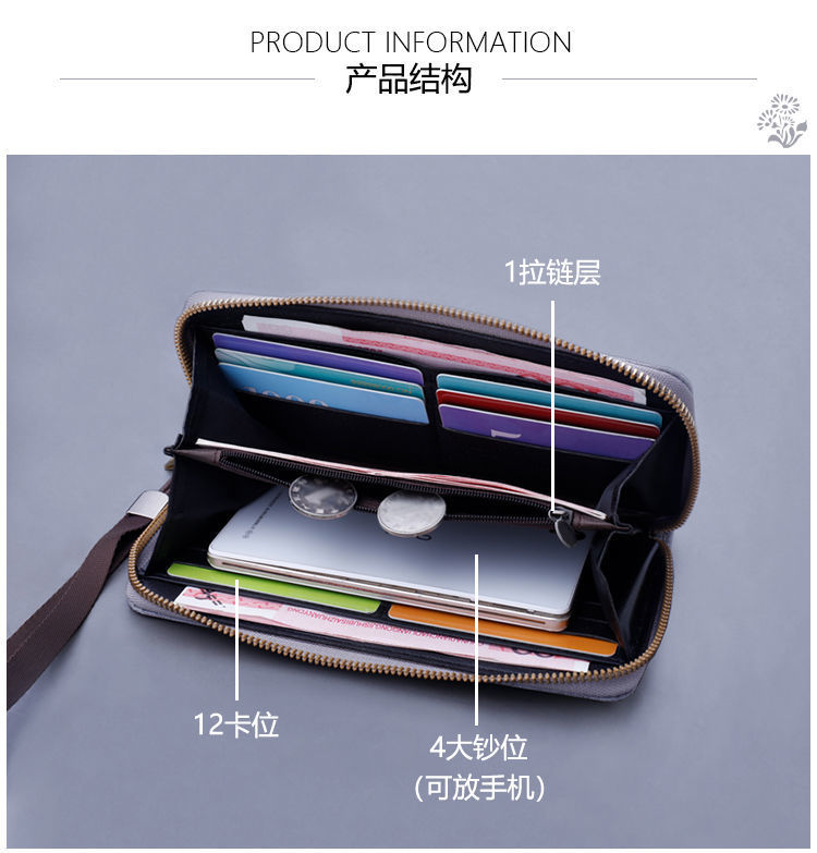 Men's wallet long canvas hand zipper can put mobile phone hand summer casual clip Oxford cloth a generation of hair