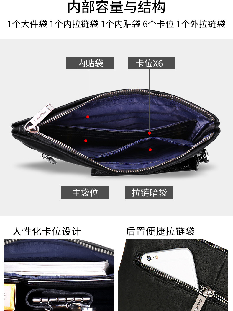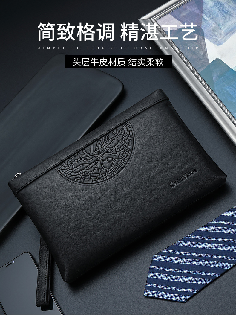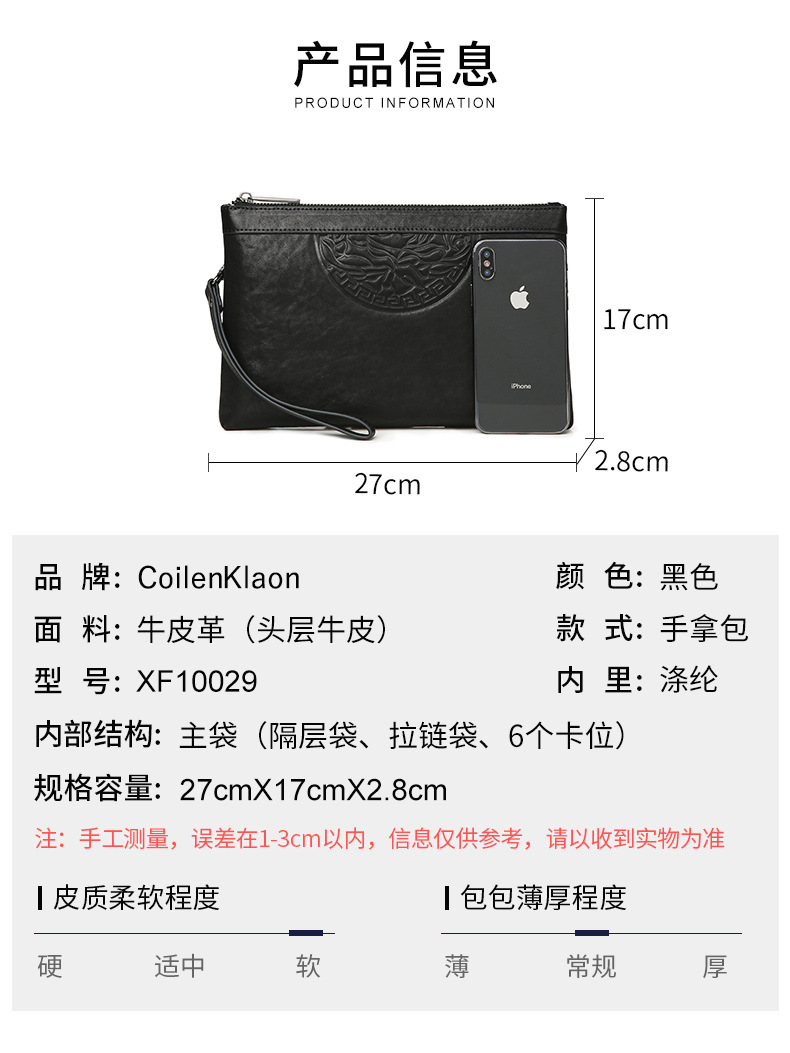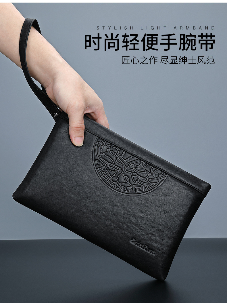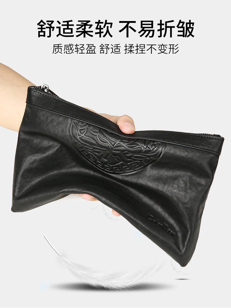 Genuine Leather Men's Handbag Thin Envelope Bag Soft Leather Clutch Bag Men's Trendy Korean Style Business Casual Large Capacity Clutch Bag