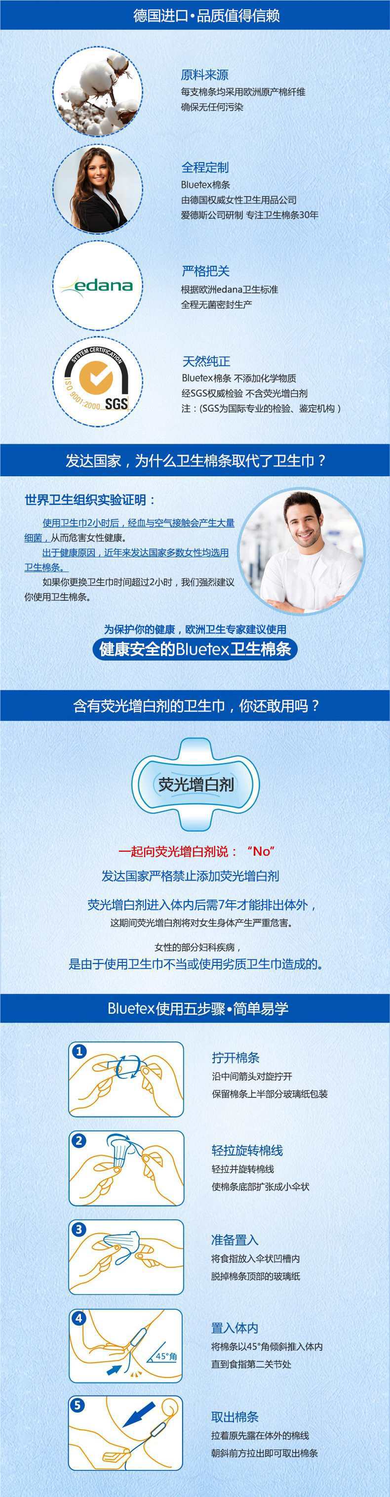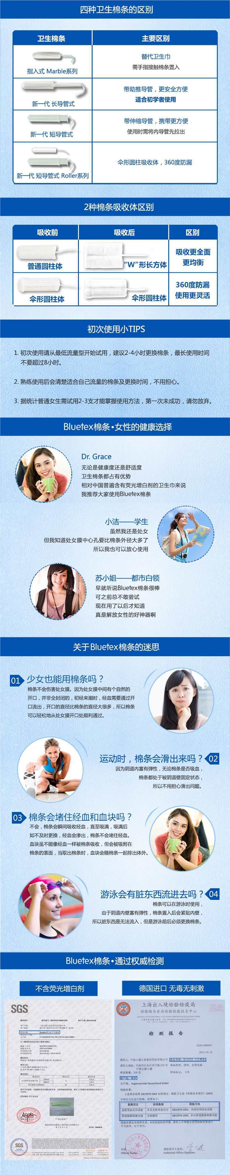 Bluetex Lanbao silk finger-in cotton strips imported from Germany tampon beginner entry menstrual swimming waterproof